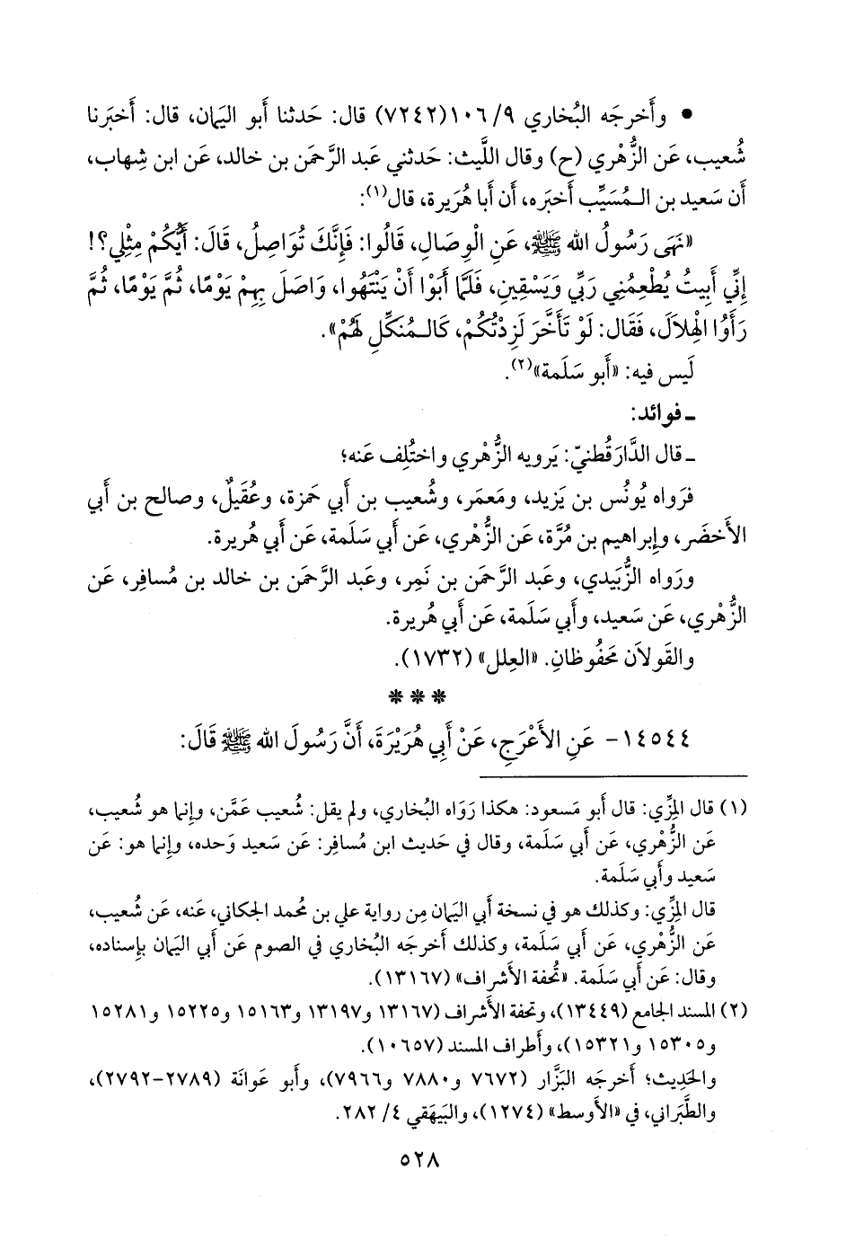 (¬١) قال المِزِّي: قال أَبو مسعود: هكذا رواه البخاري، ولم يقل: شعيب عمن، وإنما هو شعيب، عن الزُّهْري، عن أبي سلمة، وقال في حديث ابن مسافر: عن سعيد وحده، وإنما هو: عن سعيد وأبي سلمة.