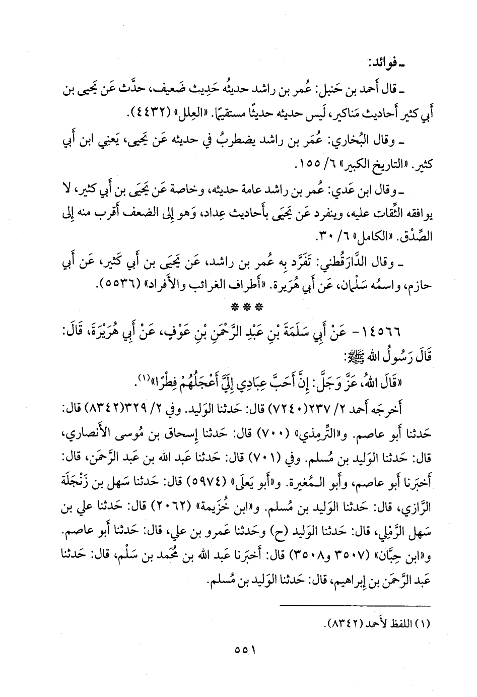 (¬٢) المسند الجامع (١٣٤٦٩)، وتحفة الأشراف (١٥٢٣٥)، وأطراف المسند (١٠٧٢٥).