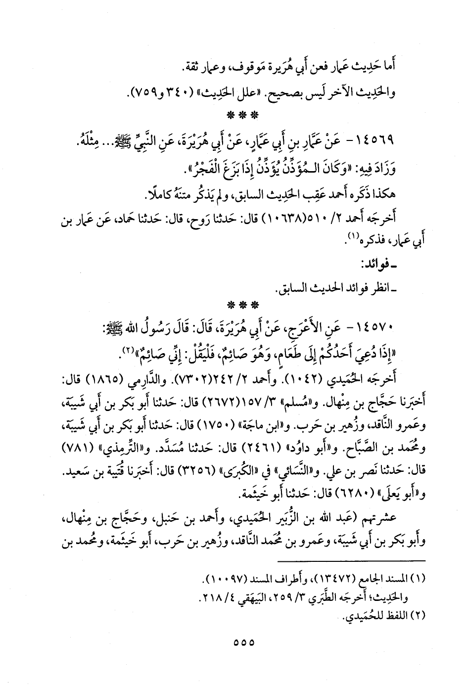 أخرجه الحُميدي (١٠٤٢). وأحمد (٧٣٠٢). والدَّارِمي (١٨٦٥) قال: أخبرنا حجاج بن مِنهال. و «مسلم» ٣/ ١٥٧ (٢٦٧٢) قال: حدثنا أَبو بكر بن أبي شيبة، وعَمرو الناقد، وزهير بن حرب. و «ابن ماجة» (١٧٥٠) قال: حدثنا أَبو بكر بن أبي شيبة، ومحمد بن الصباح. و «أَبو داود» (٢٤٦١) قال: حدثنا مُسدد. و «التِّرمِذي» (٧٨١) قال: حدثنا نصر بن علي. و «النَّسَائي» في «الكبرى» (٣٢٥٦) قال: أخبرنا قتيبة بن سعيد. و «أَبو يَعلى» (٦٢٨٠) قال: حدثنا أَبو خيثمة.
