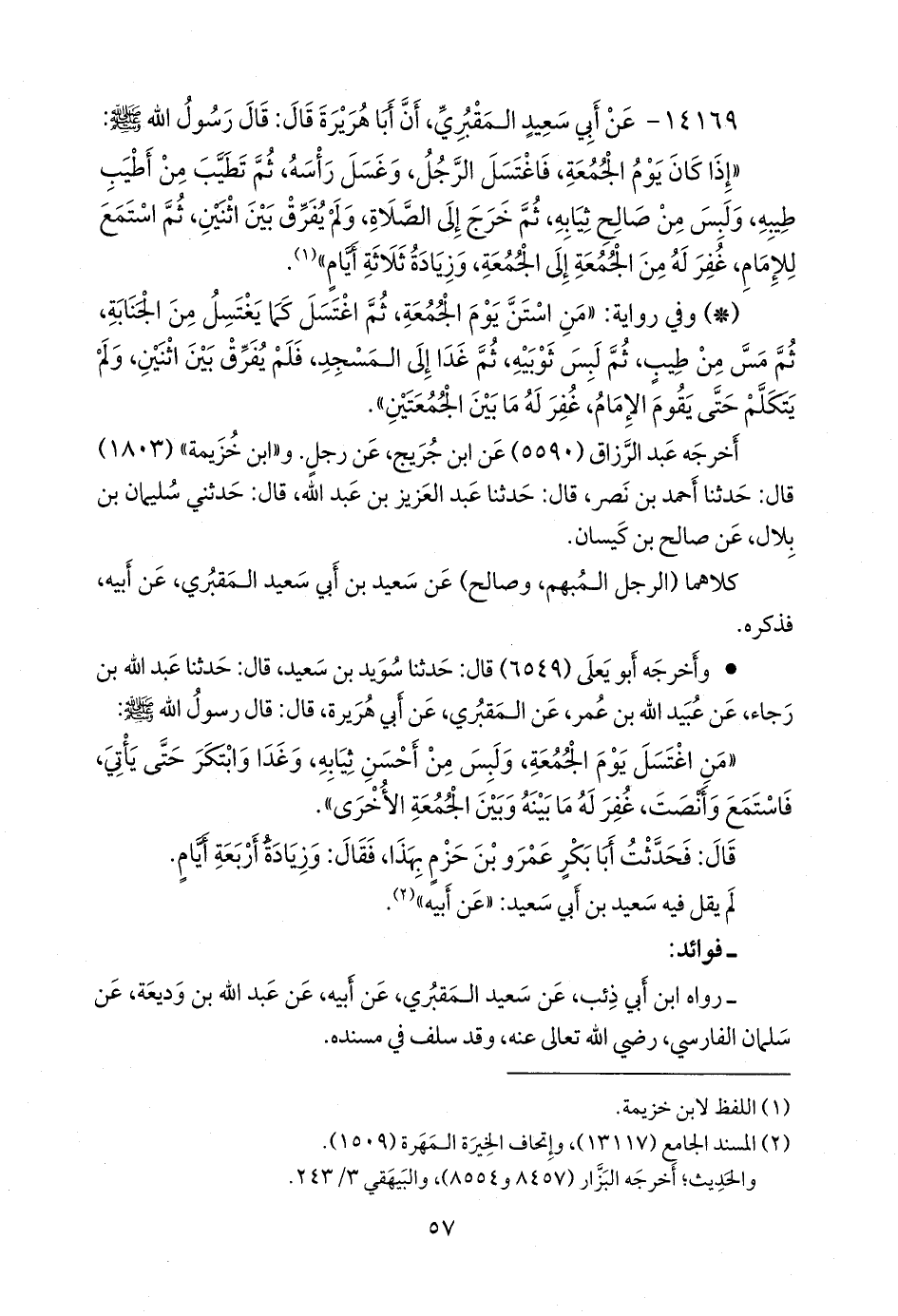 - رواه ابن أبي ذِئب، عن سعيد المَقبُري، عن أبيه، عن عبد الله بن وَديعة، عن سلمان الفارسي، رضي الله تعالى عنه، وقد سلف في مسنده برقم (٤٤٩١).