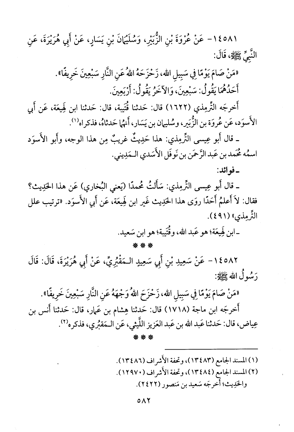 ١٤٥٨١ - عن عروة بن الزبير، وسليمان بن يسار، عن أبي هريرة، عن النبي صَلى الله عَليه وسَلم قال: