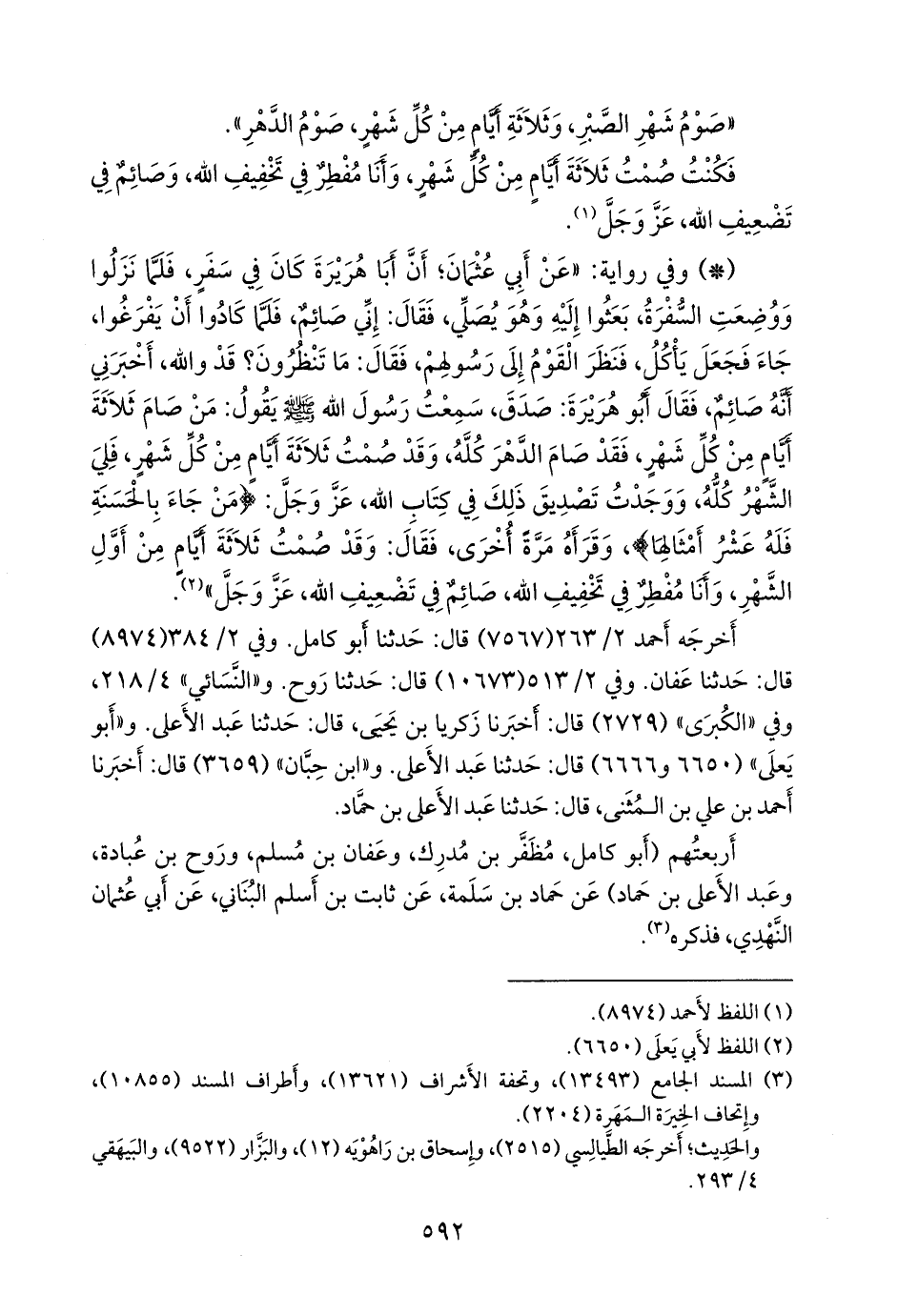 أربعتهم (أَبو كامل مُظفر بن مُدرِك، وعفان بن مسلم، وروح بن عبادة، وعبد الأعلى بن حماد) عن حماد بن سلمة، عن ثابت بن أسلم البُنَاني، عن أبي عثمان النهدي، فذكره (¬١).
