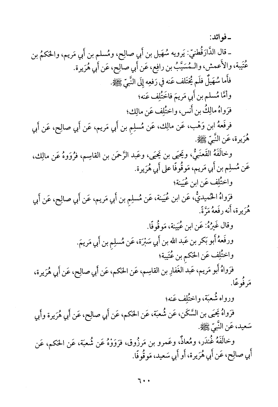 - قال الدارقُطني: يرويه سهيل بن أبي صالح، ومسلم بن أبي مريم، والحكم بن عتيبة، والأعمش، والمُسَيَّب بن رافع، عن أبي صالح، عن أبي هريرة.