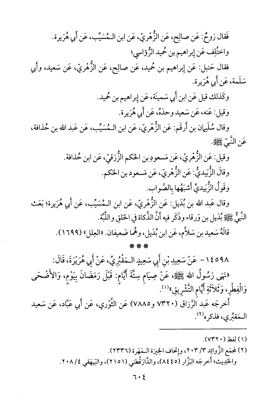 ١٤٥٩٨ - عن سعيد بن أبي سعيد المَقبُري، عن أبي هريرة، قال: