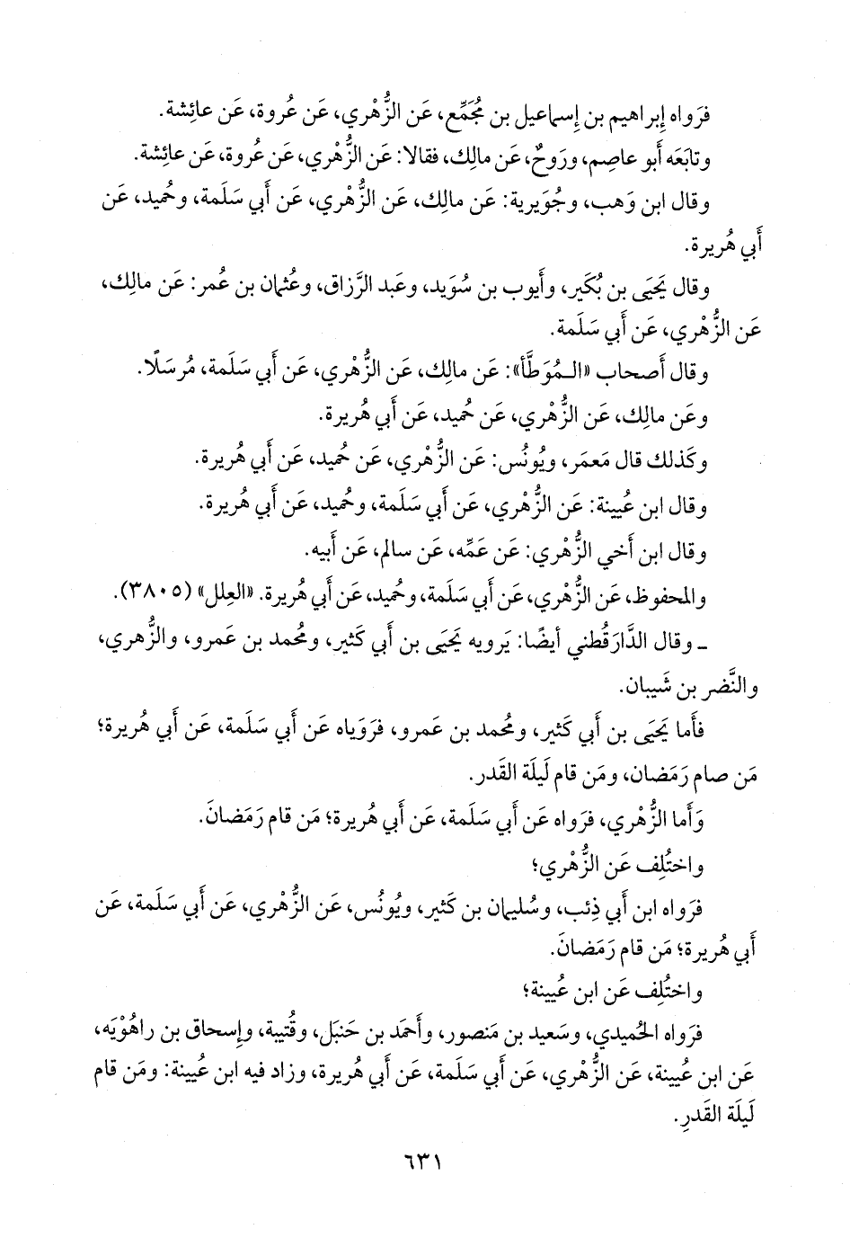 فرواه الحميدي، وسعيد بن منصور، وأحمد بن حنبل، وقتيبة، وإسحاق بن رَاهَوَيْه، عن ابن عُيينة، عن الزُّهْري، عن أبي سلمة، عن أبي هريرة، وزاد فيه ابن عُيينة: ومن قام ليلة القدر.