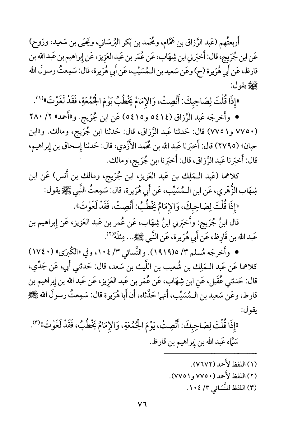 «إذا قلت لصاحبك، والإمام يخطب: أنصت، فقد لغوت».