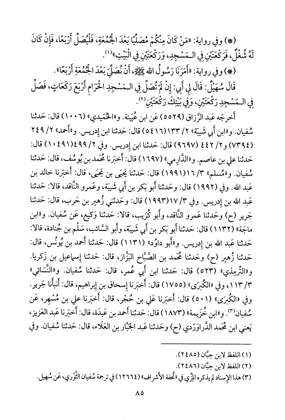 - وفي رواية: «أمرنا رسول الله صَلى الله عَليه وسَلم أن نصلي بعد الجمعة أربعا».