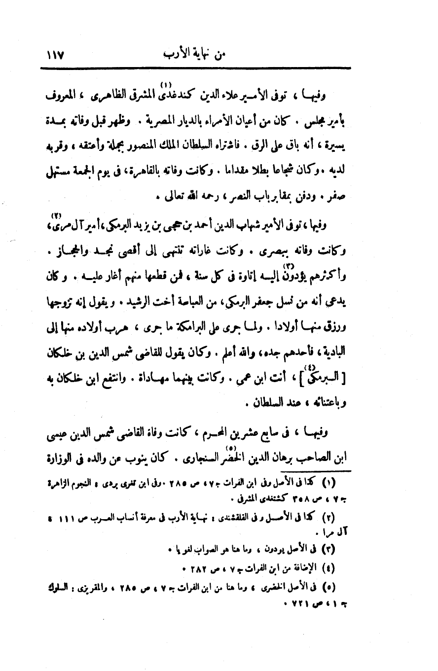 وأكثرهم يؤدون «3» إليه إتاوة فى كل سنة، فمن قطعها منهم أغار عليه. وكان يدعى أنه من نسل جعفر البرمكى، من العباسة أخت الرشيد. ويقول إنه تزوجها ورزق منها أولادا. ولما جرى على البرامكة ما جرى، هرب أولاده منها إلى البادية، فأحدهم جده، والله أعلم. وكان يقول للقاضى شمس الدين بن خلكان [البرمكى «4» ] ، أنت ابن عمى. وكانت بينهما مهاداة. وانتفع ابن خلكان به وباعتنائه، عند السلطان.