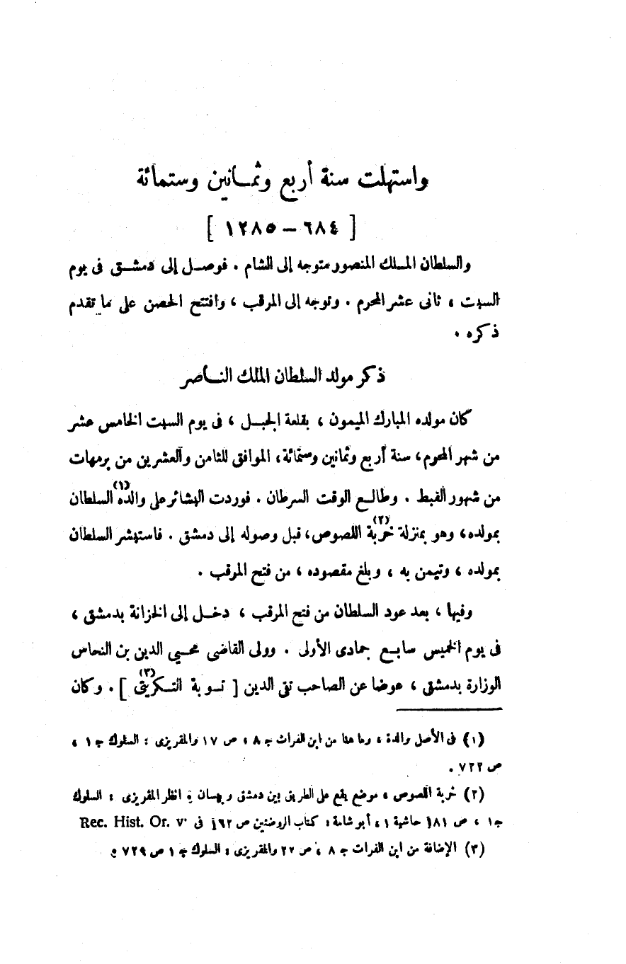 واستهلت سنة أربع وثمانين وستمائة [684- 1285]