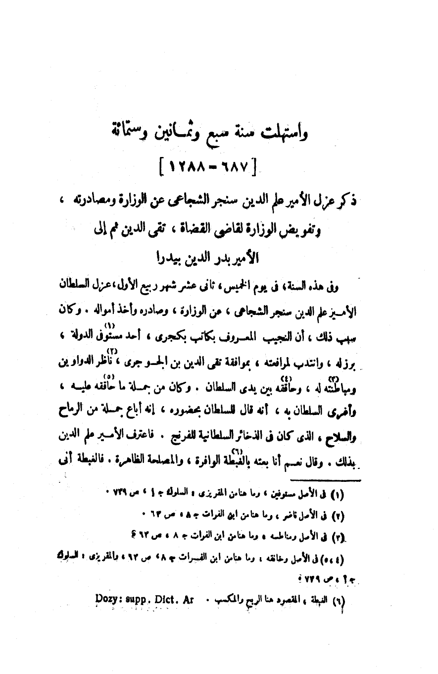 واستهلت سنة سبع وثمانين وستمائة [687- 1288]