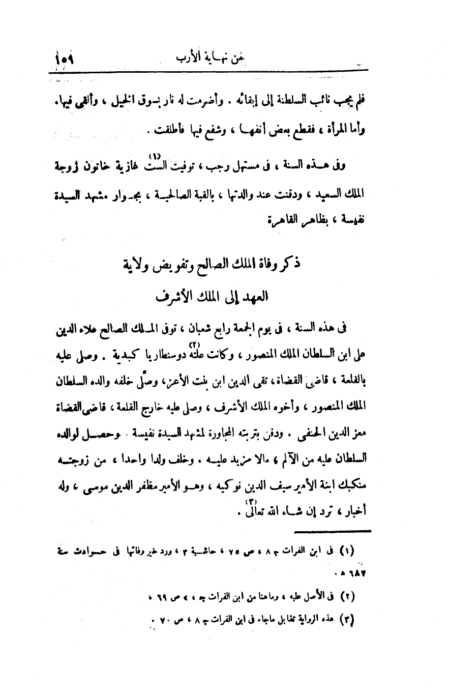 ذكر وفاة الملك الصالح وتفويض ولاية العهد إلى الملك الأشرف