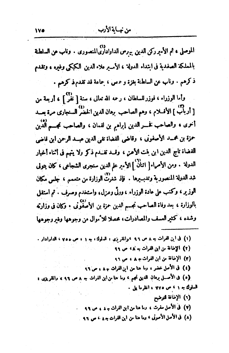 وأما الوزراء، فوزر للسلطان، رحمه الله تعالى، سنة [نفر «2» ] ، أربعة من [أرباب «3» ] الأقلام، وهم الصاحب برهان الدين الخضر «4» السنجارى مرة بعد أخرى، والصاحب فخر الدين إبراهيم بن لقمان، والصاحب نجم الدين «5» حمزة بن محمد الأصفونى، وقاضى القضاة تقى الدين عبد الرحمن ابن قاضى القضاة تاج الدين ابن بنت الأعز، وقد تقدم ذكر ولايتهم فى أثناء أخبار الدولة. ومن الأمراء [اثنان «6» ] الأمير علم الدين سنجرى الشجاعى، كان يتولى شد الدولة المنصورية وتدبيرها. فإذ شغرت «7» الوزارة من متعمم، جلس مكان الوزير، وكتب على عادة الوزراء، وولّى وعزل، واستخدم وصرف. ثم استقل بالوزارة، بعد وفاة الصاحب نجم الدين حمزة بن الأصفونى «8» . وكان فى وزارته وشده، كثير العسف والمصادرات، محصلا للأموال من وجوهها وغير وجوهها