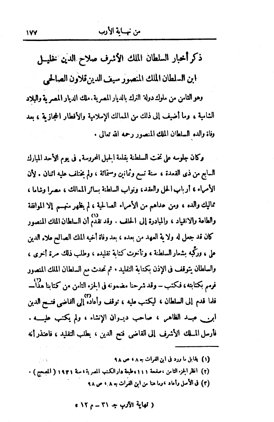 ذكر أخبار السلطان الملك الأشرف صلاح الدين خليل ابن السلطان الملك المنصور سيف الدين قلاون الصالحى وهو الثامن من ملوك دولة الترك بالديار المصرية.