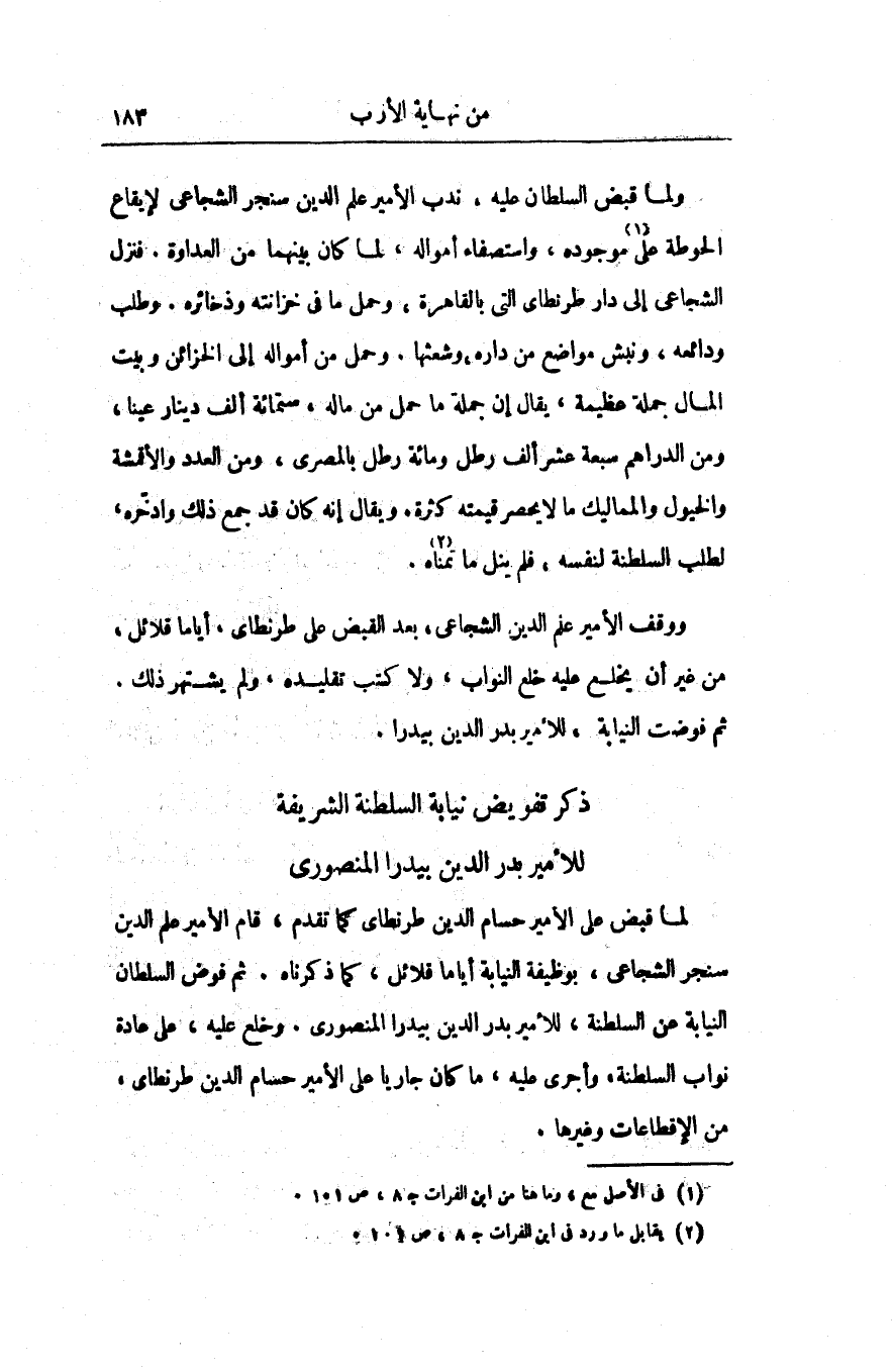 ذكر تفويض نيابة السلطنة الشريفة للأمير بدر الدين بيدرا المنصورى