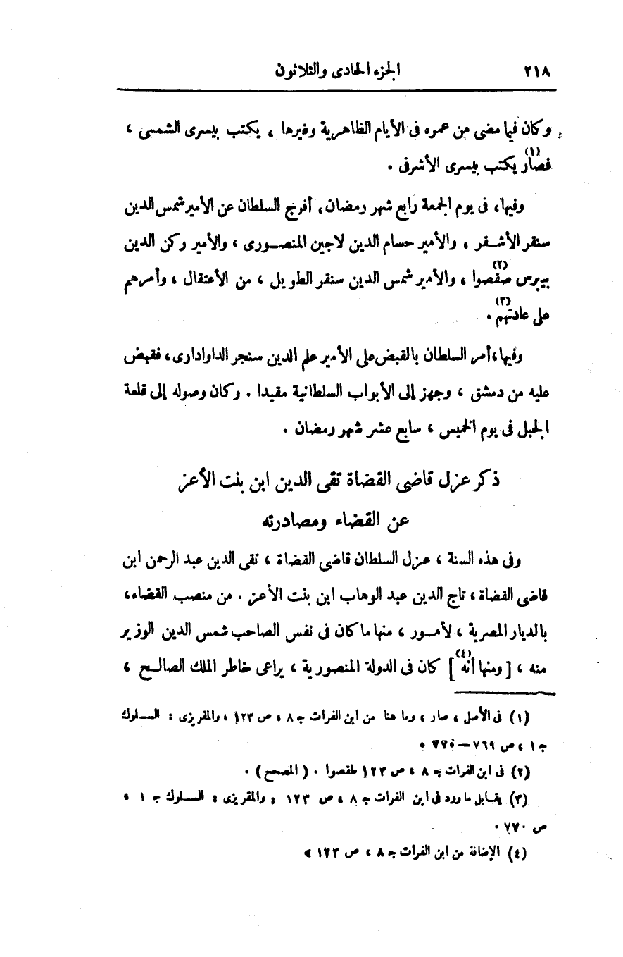 وفيها، فى يوم الجمعة رابع شهر رمضان، أفرج السلطان عن الأمير شمس الدين سنقر الأشقر، والأمير حسام الدين لاجين المنصورى، والأمير ركن الدين بيبرس صقصوا «2» ، والأمير شمس الدين سنقر الطويل، من الأعتقال، وأمرهم على عادتهم «3» .