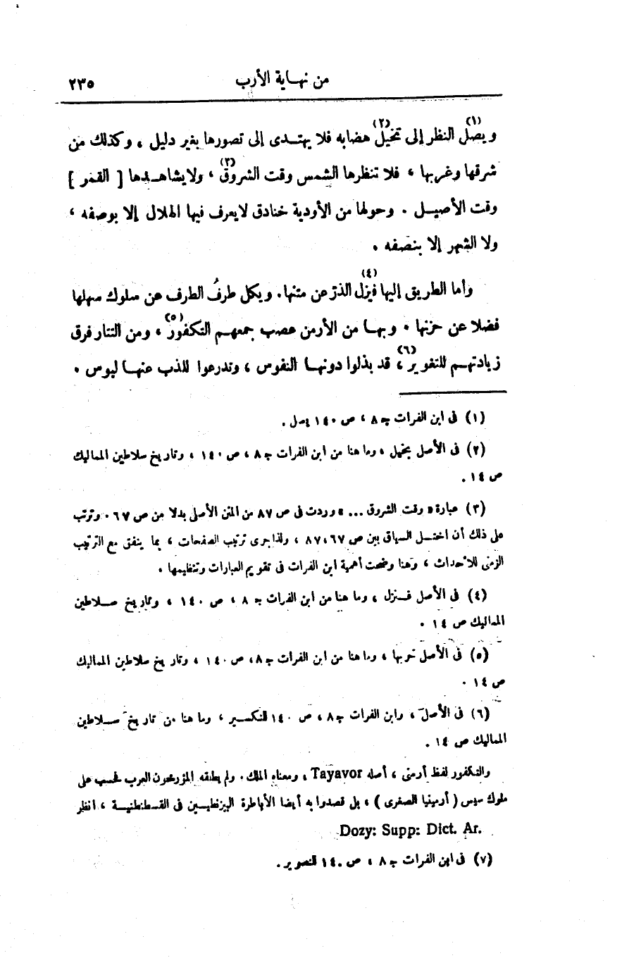 وأما الطريق إليها فيزل «4» الذرّ عن متنها. ويكل طرف الطرف عن سلوك سهلها فضلا عن حزنها. «5» وبها من الأرمن عصب جمعهم التكفور «6» ، ومن التتار فرق زيادتهم للتغوير «7» ، قد بذلوا دونها النفوس، وتدرعوا للذب عنها لبوس.