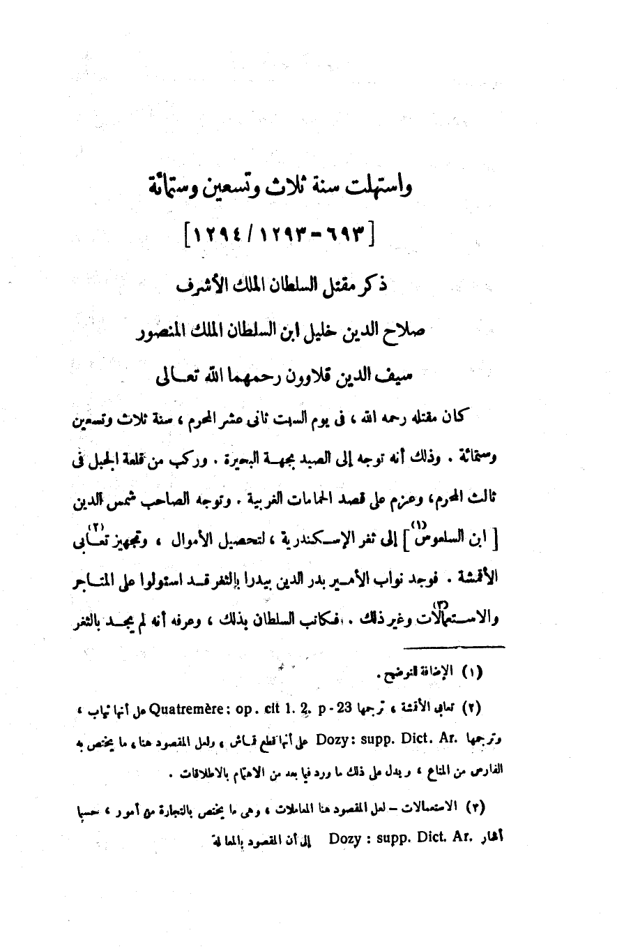 واستهلت سنة ثلاث وتسعين وستمائة [693- 1293/1294]