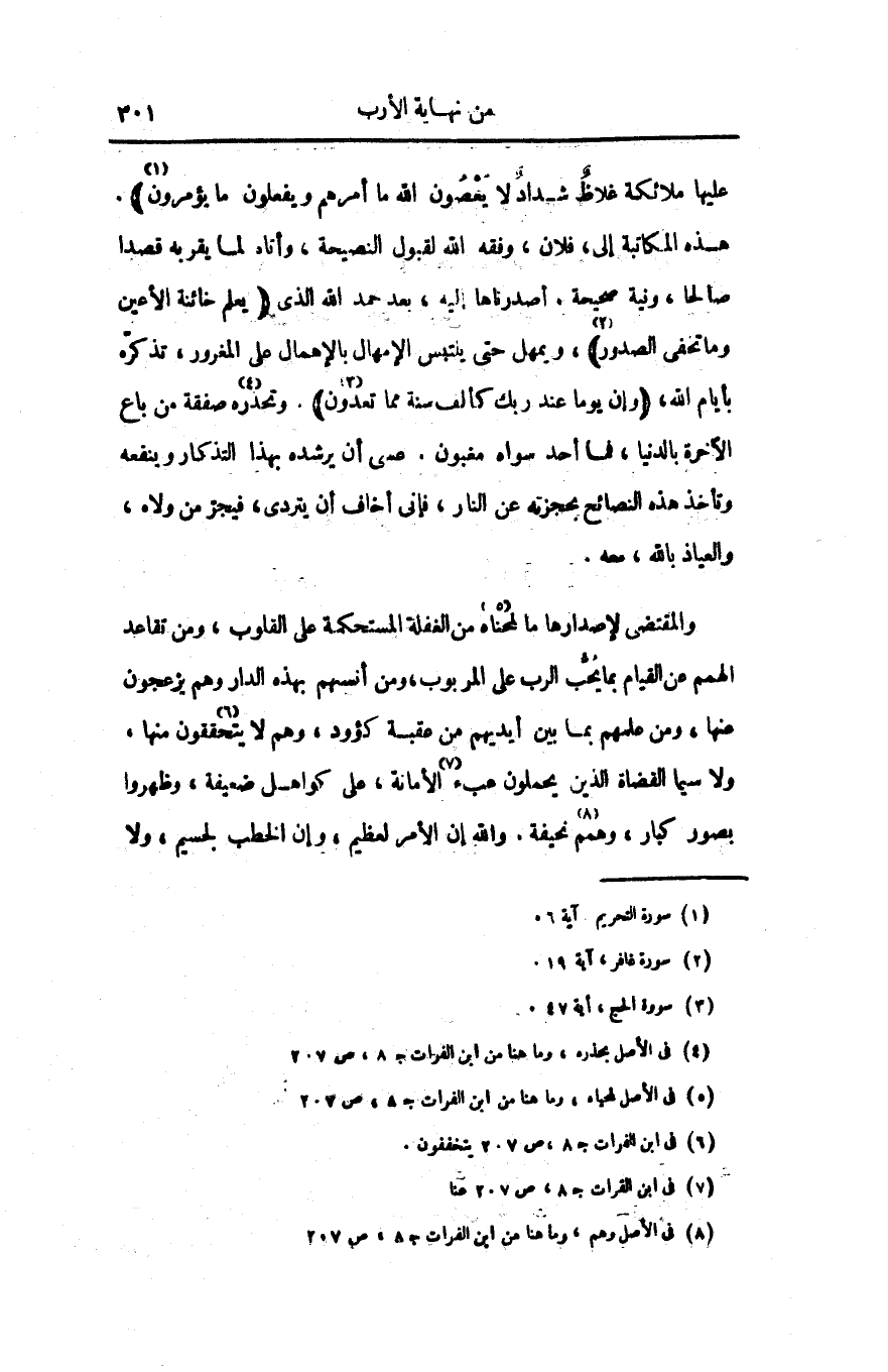 والمقتضى لإصدارها ما لمحناه «5» من الغفلة المستحكمة على القلوب، ومن تقاعد الهمم عن القيام بما يحب الرب على المربوب، ومن أنسهم بهذه الدار وهم يزعجون عنها، ومن علمهم بما بين أيديهم من عقبة كؤود، وهم لا يتحققون «6» منها، ولا سيما القضاة الذين يحملون عبء «7» الأمانة، على كواهل ضعيفة، وظهروا بصور كبار، وهمم «8» نحيفة. والله إن الأمر العظيم، وإن الخطب لجسيم، ولا