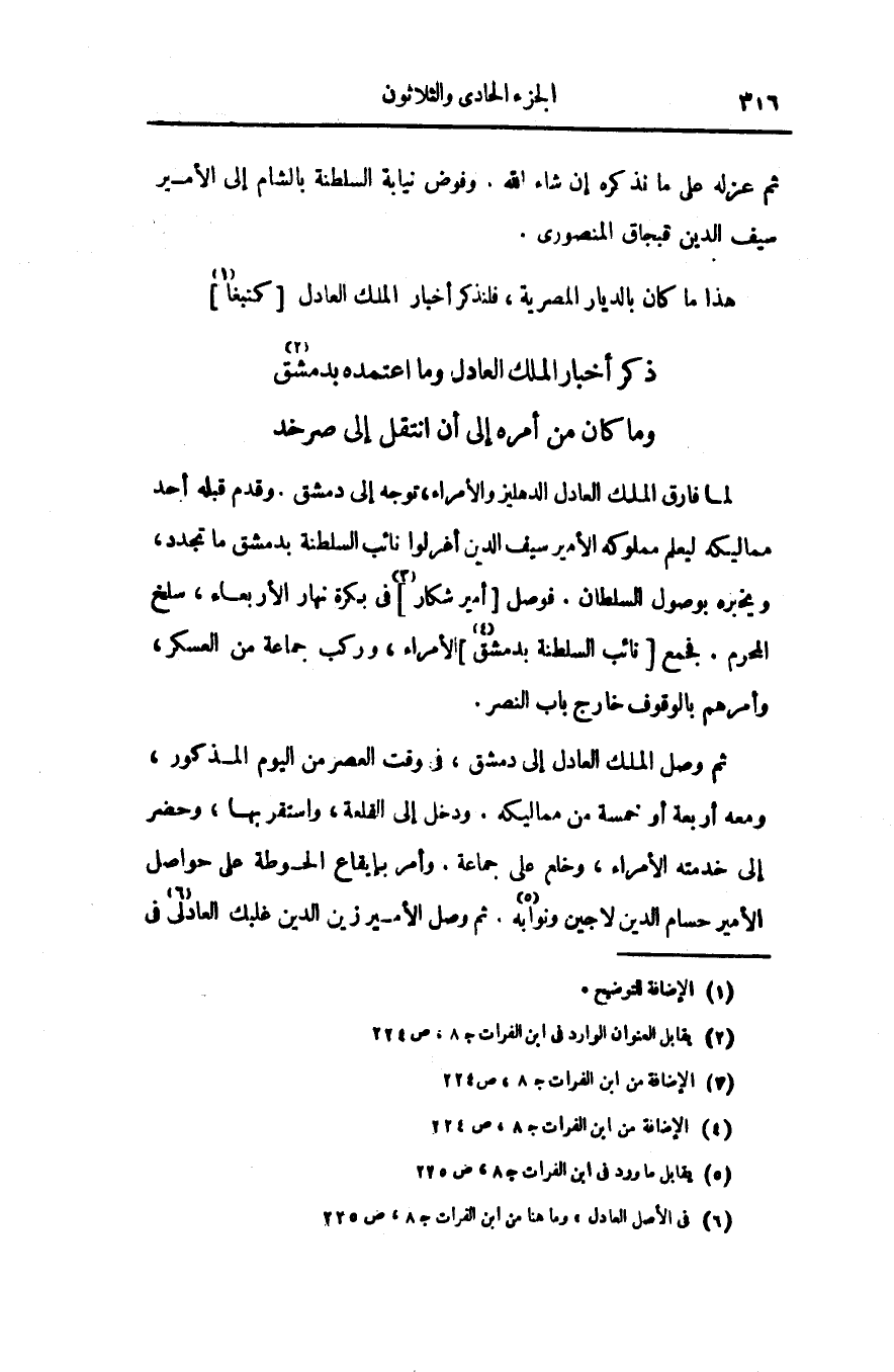 لما فارق الملك العادل الدهليز والأمراء، توجه إلى دمشق. وقدم قبله أحد مماليكه ليعلم مملوكه الأمير سيف الدين أغرلوا نائب السلطنة بدمشق ما تجدد، ويخبره بوصول السلطان. فوصل [أمير شكار «3» ] فى بكرة نهار الأربعاء، سلخ المحرم. فجمع [نائب السلطنة بدمشق «4» ] الأمراء، وركب جماعة من العسكر، وأمرهم بالوقوف خارج باب النصر.