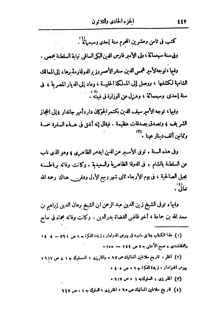 وفيها، توجه الأمير سيف الدين بكتمر الجو كان دار، أمير جاندار؛ إلى الحجاز الشريف؛ وتصدق بصدقات عظيمة. فيقال إنه أنفق فى هذه السفرة خمسة وثمانين ألف دينار عينا. «3»