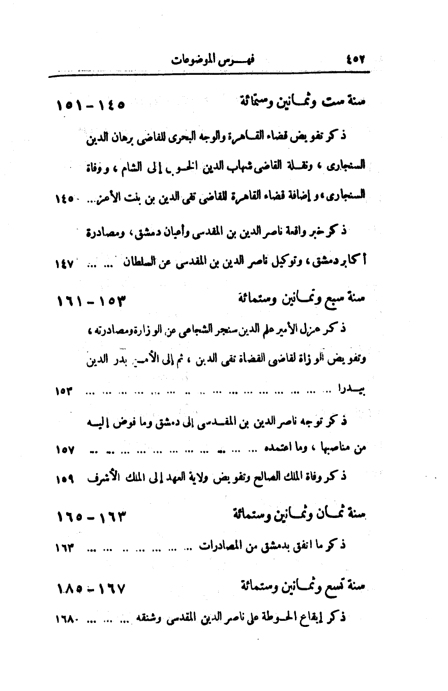 ذكر تفويض قضاء القاهرة والوجه البحرى للقاضى برهان الدين السنجارى، ونقلة شهاب الدين الخوبى إلى الشام، ووفاة السنجارى، وإضافة قضاء القاهرة للقاضى تقى الدين بن بنت الأعز 145