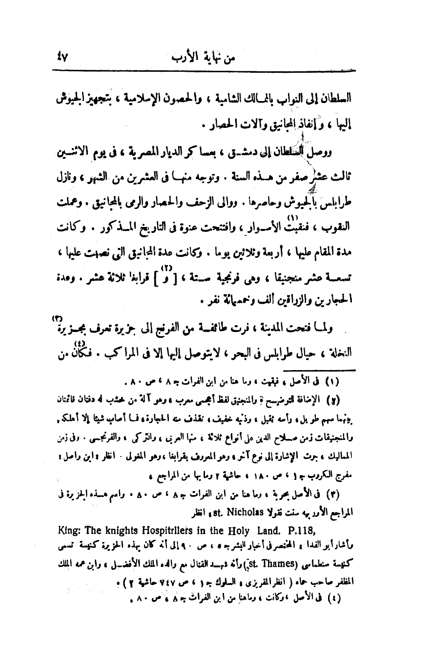 ولما فتحت المدينة، فرت طائفة من الفرنج إلى جزيرة تعرف بجزيرة «3» النخلة، حيال طرابلس فى البحر، لا يتوصل إليها إلا فى المراكب. فكان «4» من