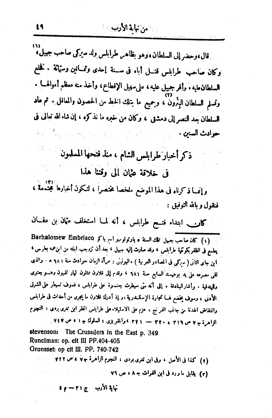 ذكر أخبار طرابلس الشام، منذ فتحها المسلمون فى خلاقة عثمان إلى وقتنا هذا