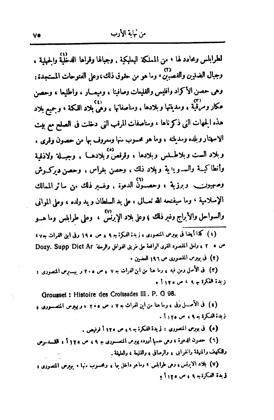 وهى حصن الأكراد وافليس والقليعات وصافيتا، وميعار، واطليعا، وحصن عكار ومرقية «3» ، ومدينتها وبلادها، ومناصفاتها، وهى «4» بلاد اللكمة، وجميع بلاد هذه الجهات التى ذكرناها، ومناصفات المرقب التى دخلت فى الصلح مع بيت الاسبتار وبلده ومدينته، وما هو محسوب منها ومعروف بها من حصون وقرى، وبلاد الست وبلاطنس وبلادها، وقرقص «5» وبلادها، وجبلة ولاذقية وأنطاكية والسويدية وبلاد ذلك، وحصن بغراس، وحصن دير كوش وصهيون وبرزية، وحصون «6» الدعوة، وغير ذلك من سائر الممالك الإسلامية، وما سيفتحه الله تعالى، على يد السلطان ويد ولده، وعلى الموانى والسواحل والأبراج وغير ذلك؛ وعلى بلاد الإبرنس «7» ، وعلى طرابلس وما هو