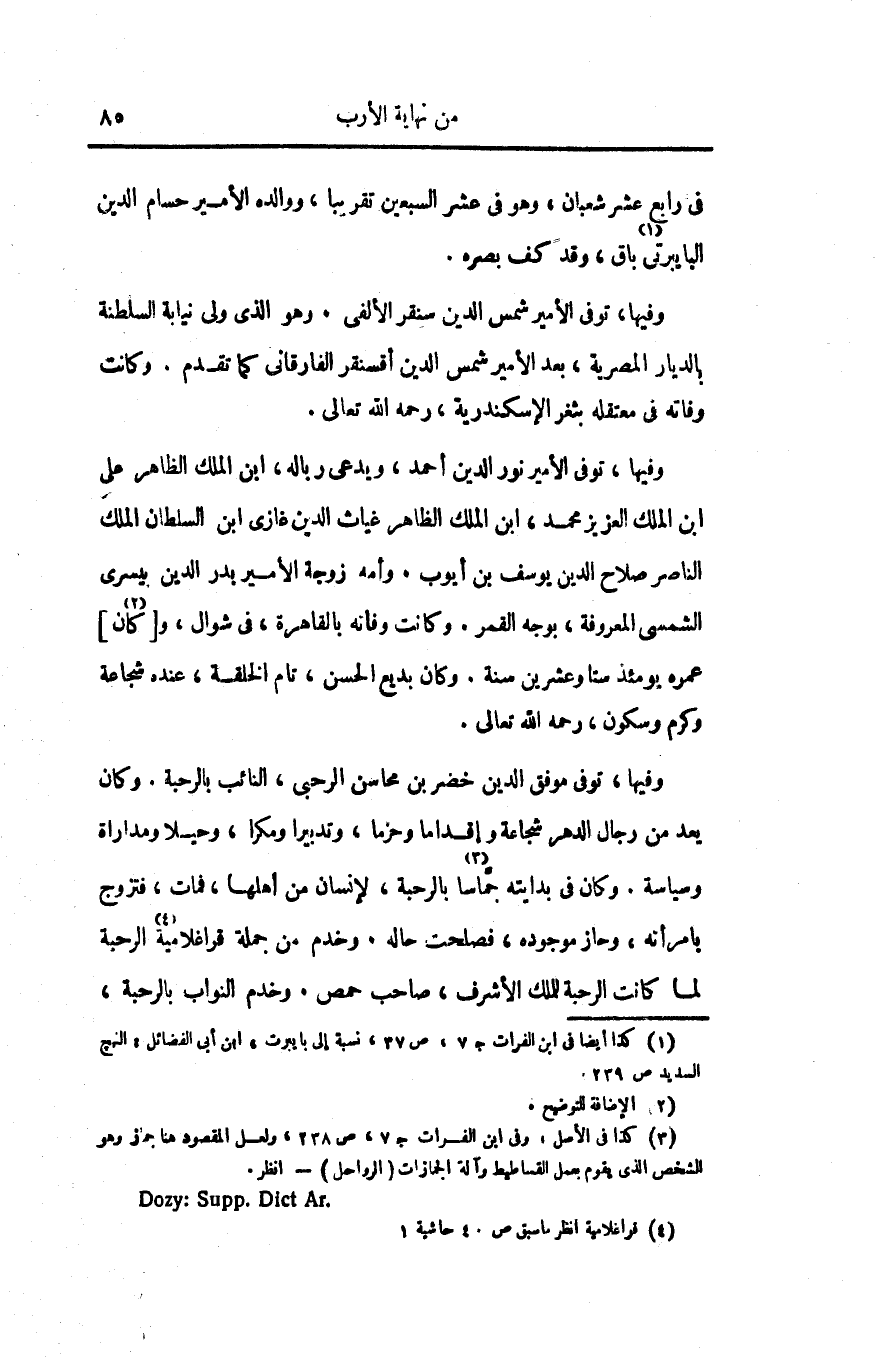فى رابع عشر شعبان، وهو فى عشر السبعين تقريبا، ووالده الأمير حسام الدين البايبرتى «1» باق، وقد كف بصره.