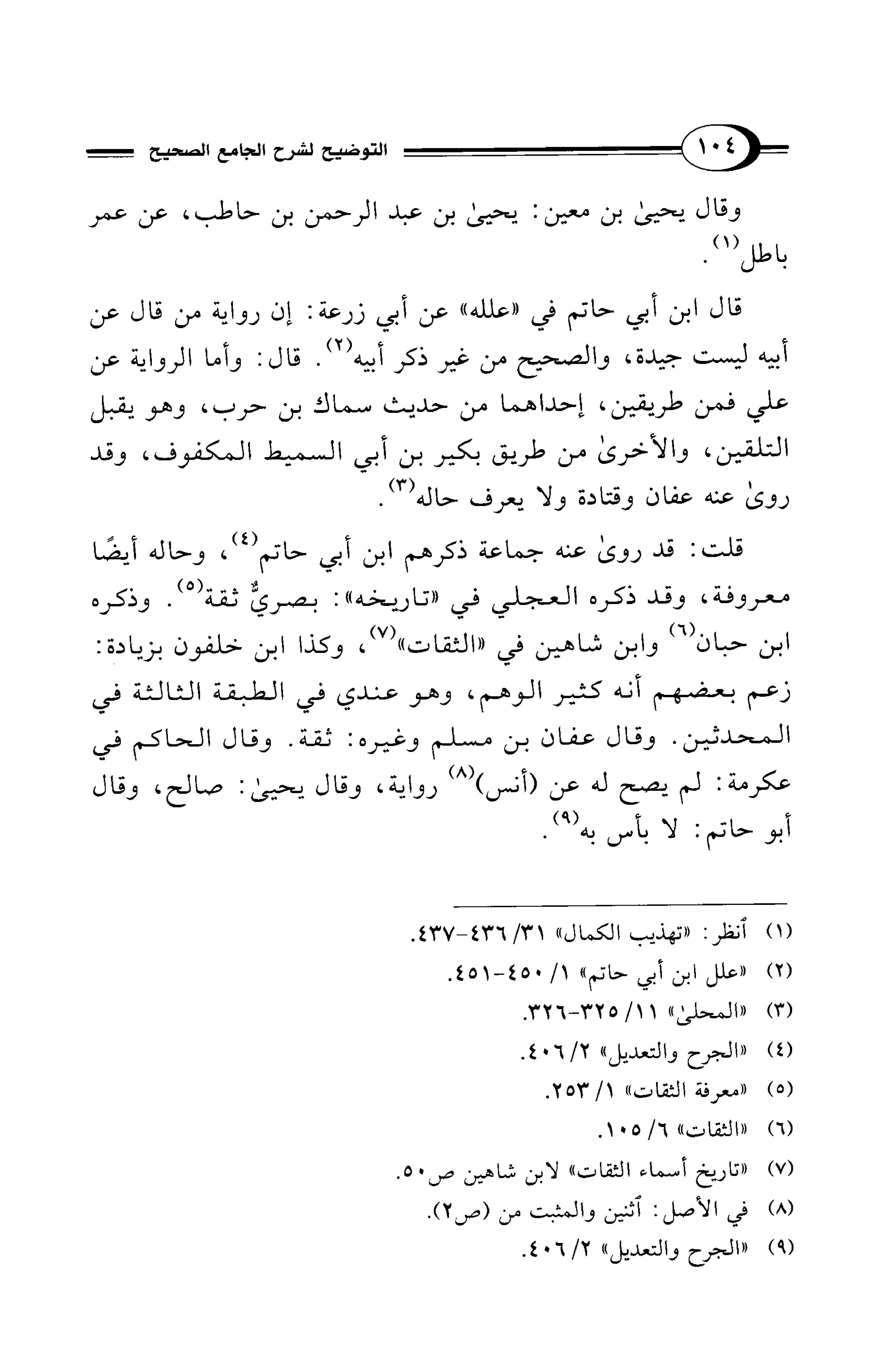 (¬9) "الجرح والتعديل" 2/ 406.