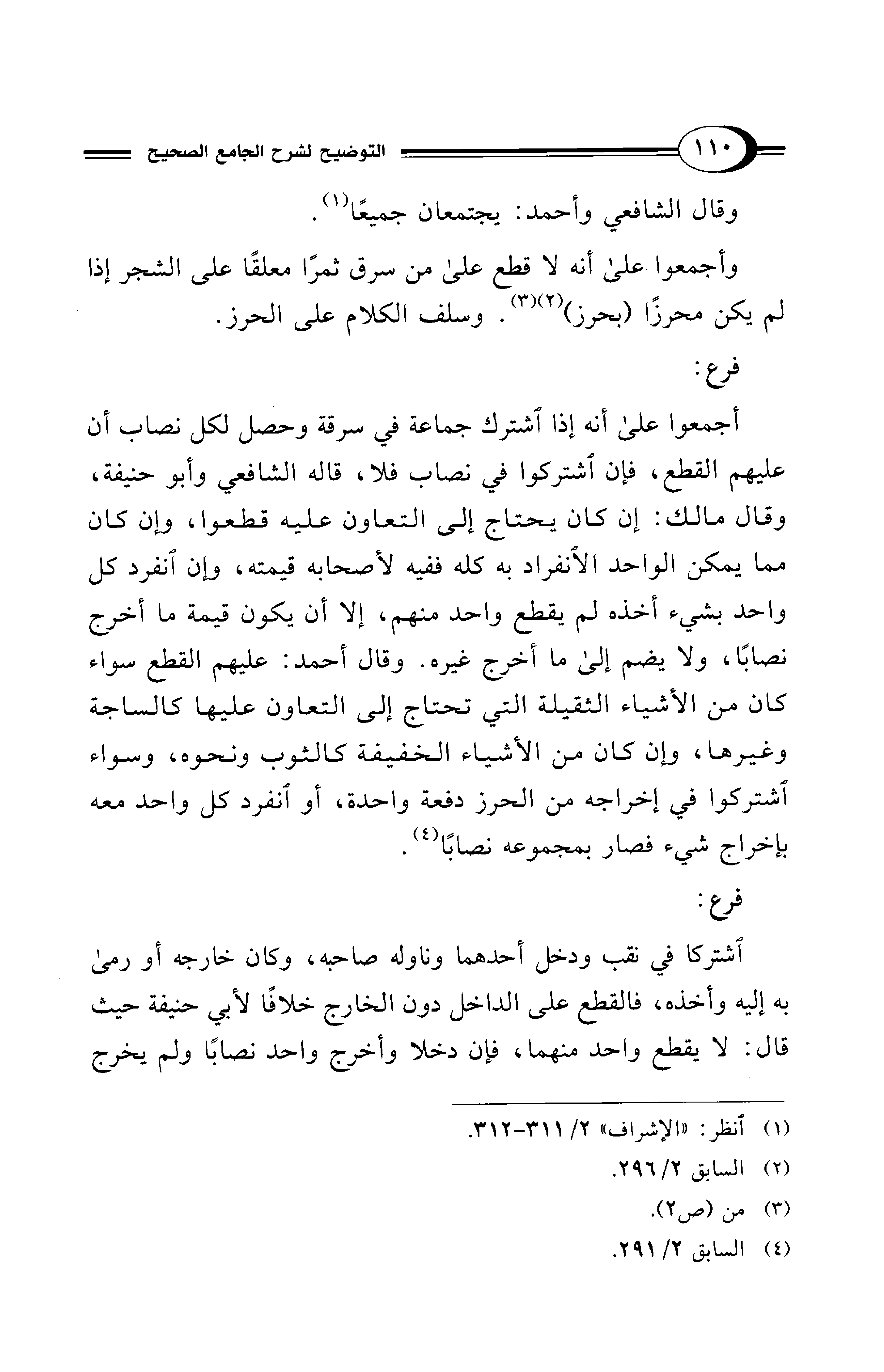 أجمعوا على أنه إذا اشترك جماعة في سرقة وحصل لكل نصاب أن عليهم القطع، فإن اشتركوا في نصاب فلا، قاله الشافعي وأبو حنيفة، وقال مالك: إن كان يحتاج إلى التعاون عليه قطعوا، وإن كان بما يمكن الواحد الانفراد به كله ففيه لأصحابه قيمته، وإن انفرد كل واحد بشيء أخذه لم يقطع واحد منهم، إلا أن يكون قيمة ما أخرج نصابًا، ولا يضم إلى ما أخرج غيره. وقال أحمد: عليهم القطع سواء كان من الأشياء الثقيلة التي تحتاج إلى التعاون عليها كالساجة وغيرها، وإن كان من الأشياء الخفيفة كالثوب ونحوه، وسواء اشتركوا في إخراجه من الحرز دفعة واحدة، أو انفرد كل واحد معه جإخراج شيء فصار بمجموعه نصابًا (¬4).