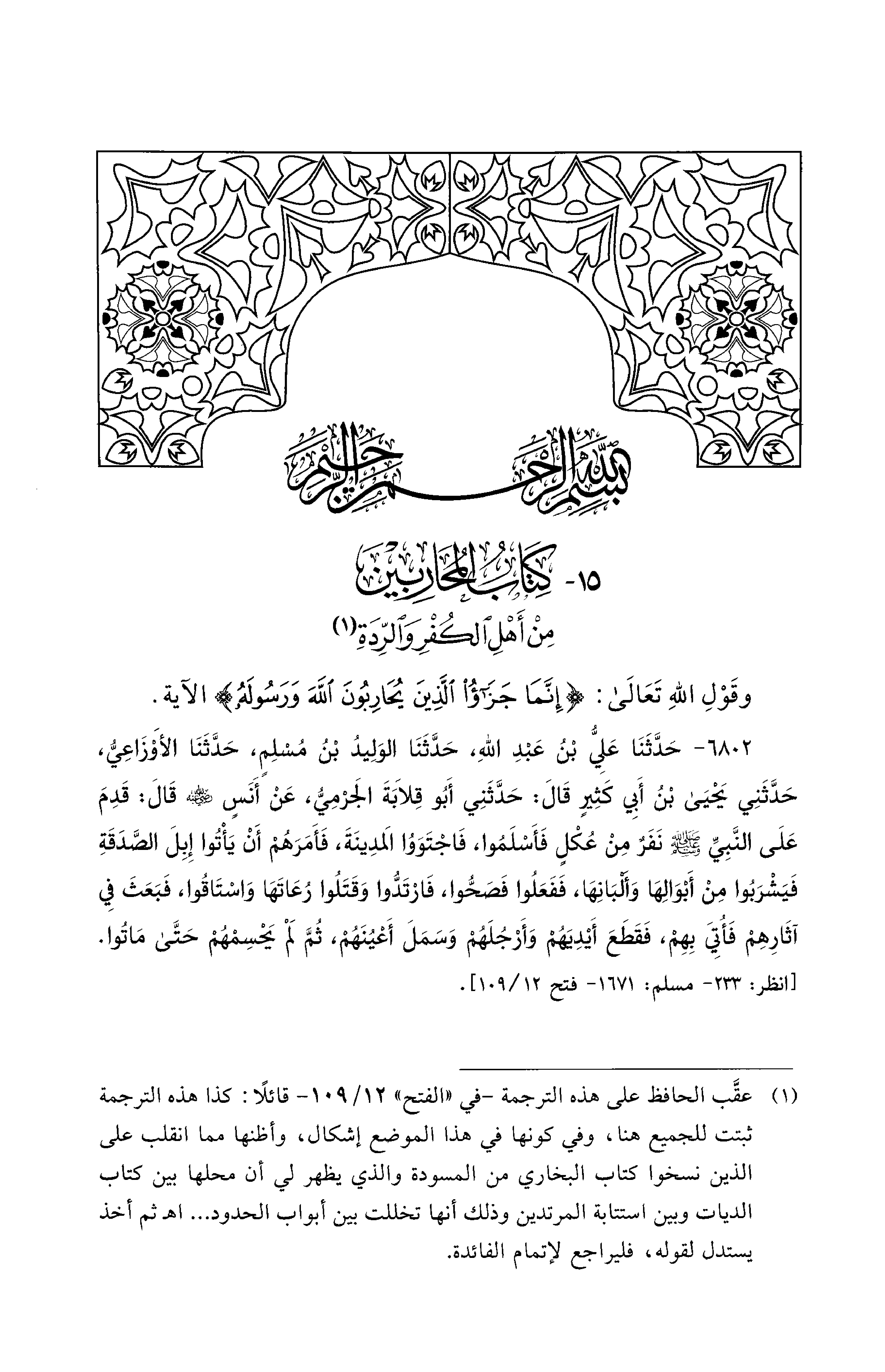 15 - كِتَابُ المُحَارِبِينَ مِنْ أَهْلِ الكُفْرِ وَالرِّدَةِ (¬1)