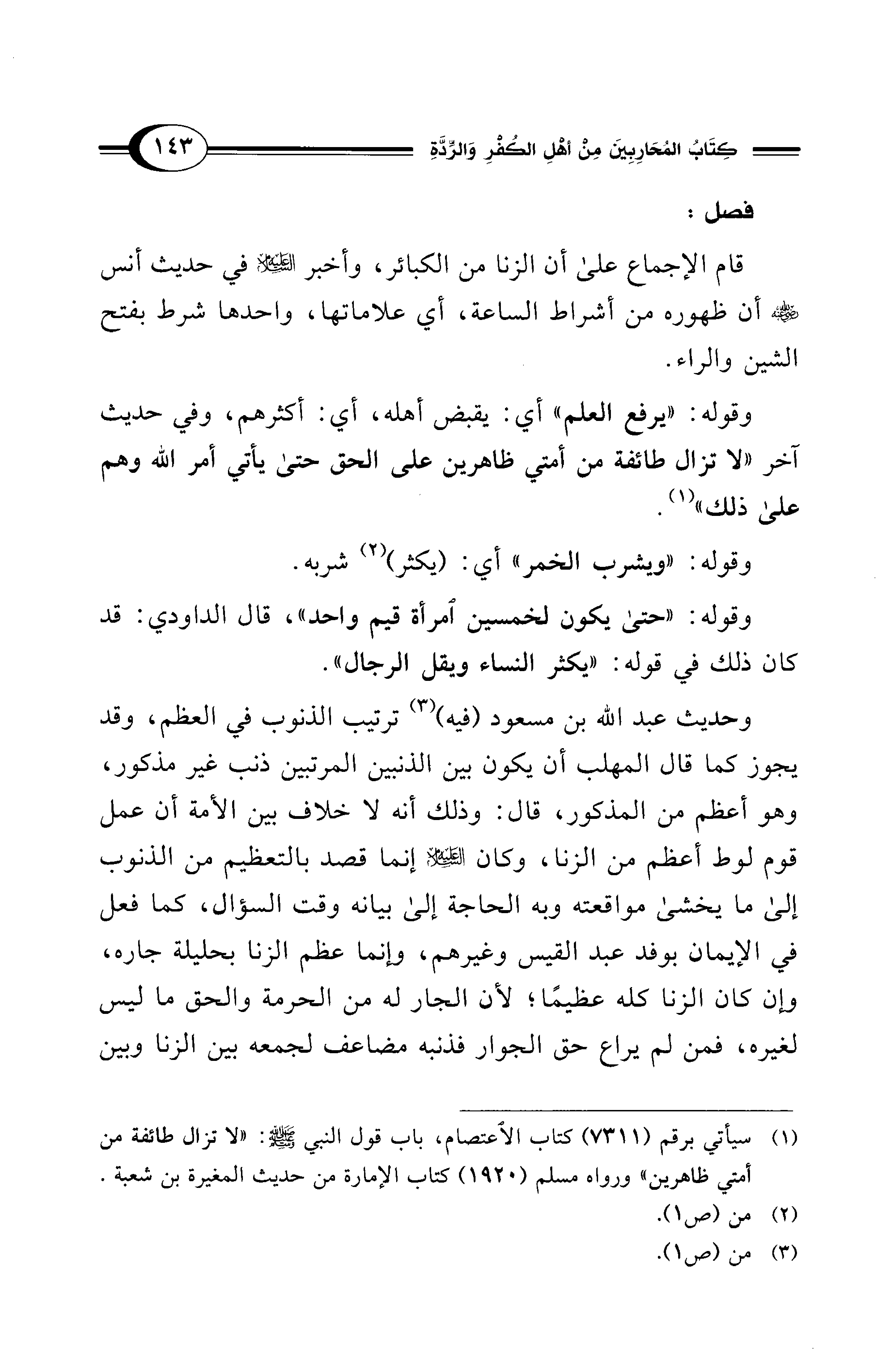 قام الإجماع على أن الزنا من الكبائر، وأخبر - عليه السلام - في حديث أنس - رضي الله عنه - أن ظهوره من أشراط الساعة، أي علاماتها، واحدها شرط بفتح الشين والراء.