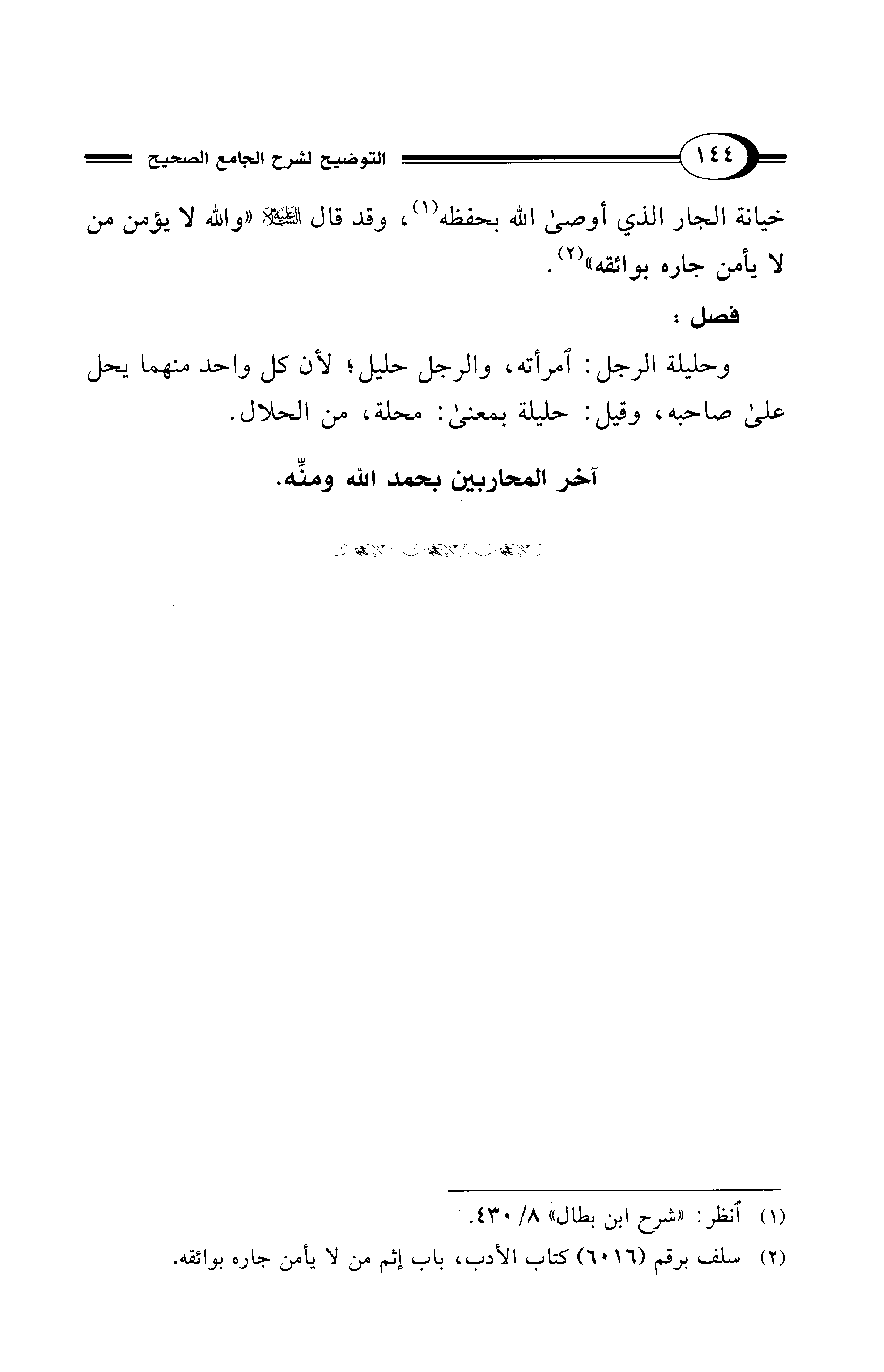 (¬2) سلف برقم (6016) كتاب الأدب، باب إثم من لا يأمن جاره بوائقه.