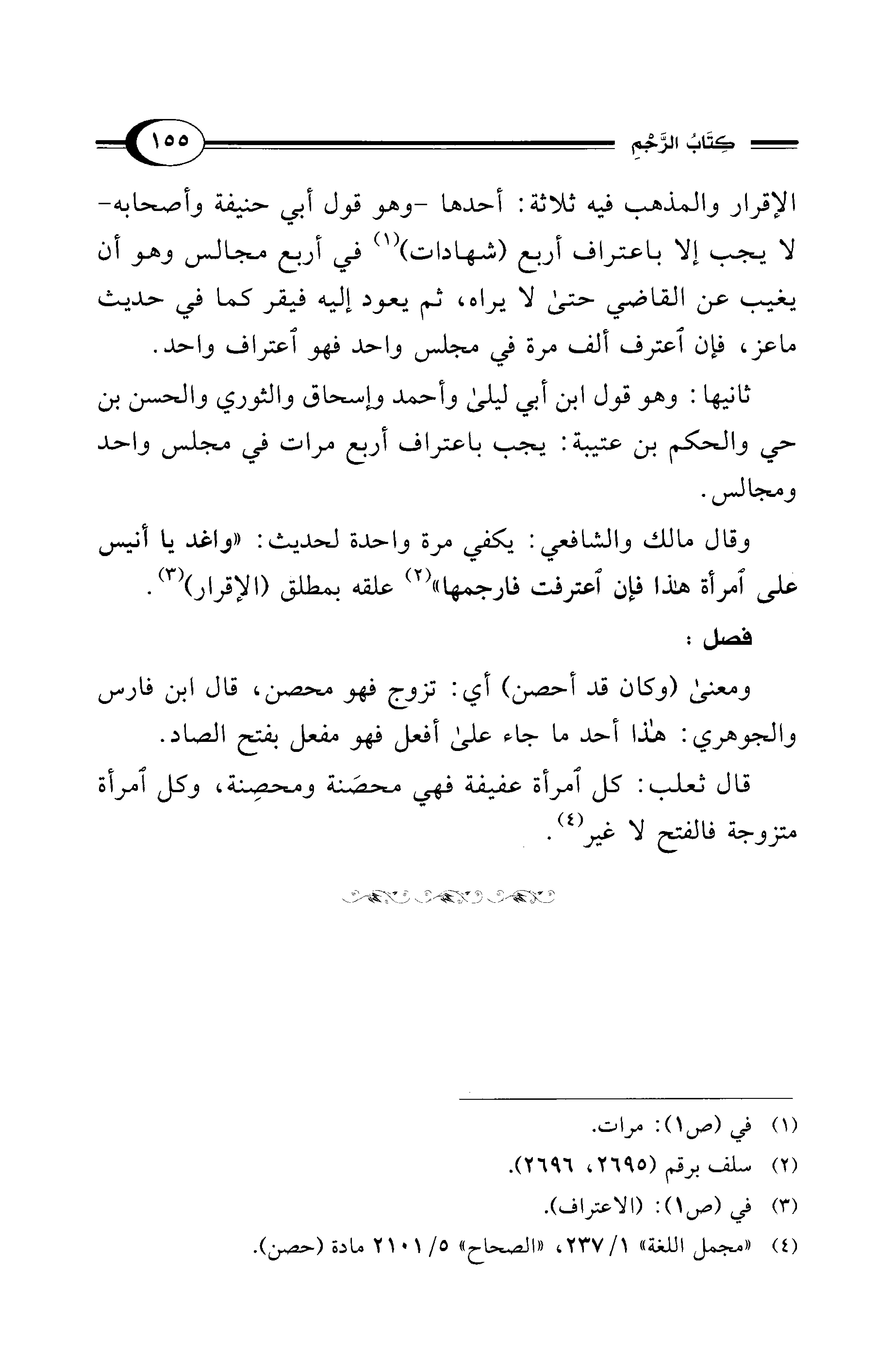(¬4) "مجمل اللغة" 1/ 237، "الصحاح" 5/ 2101 مادة (حصن).