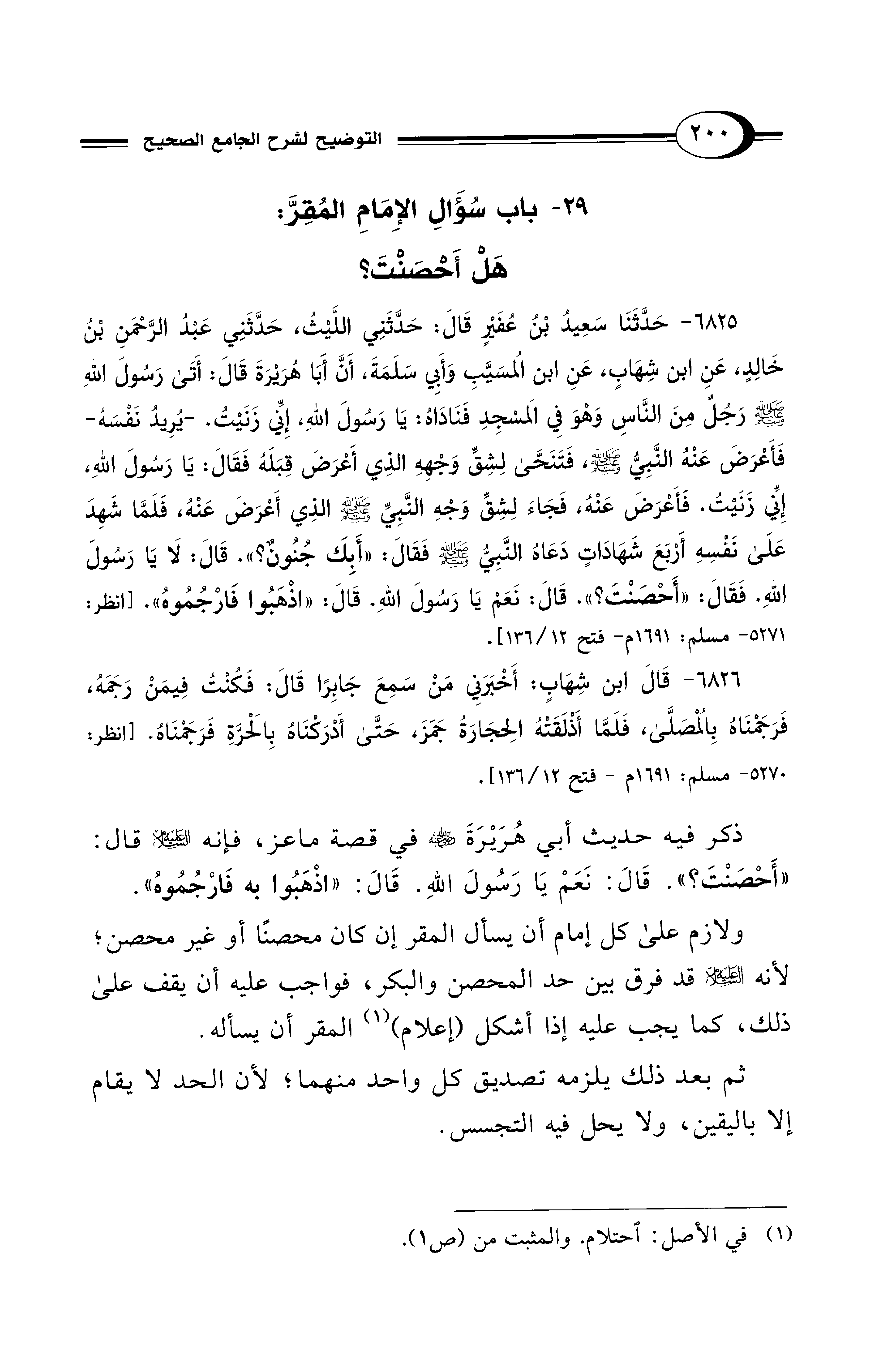 29 - باب سُؤَالِ الإِمَامِ المُقِرَّ: هَلْ أَحْصَنْتَ؟