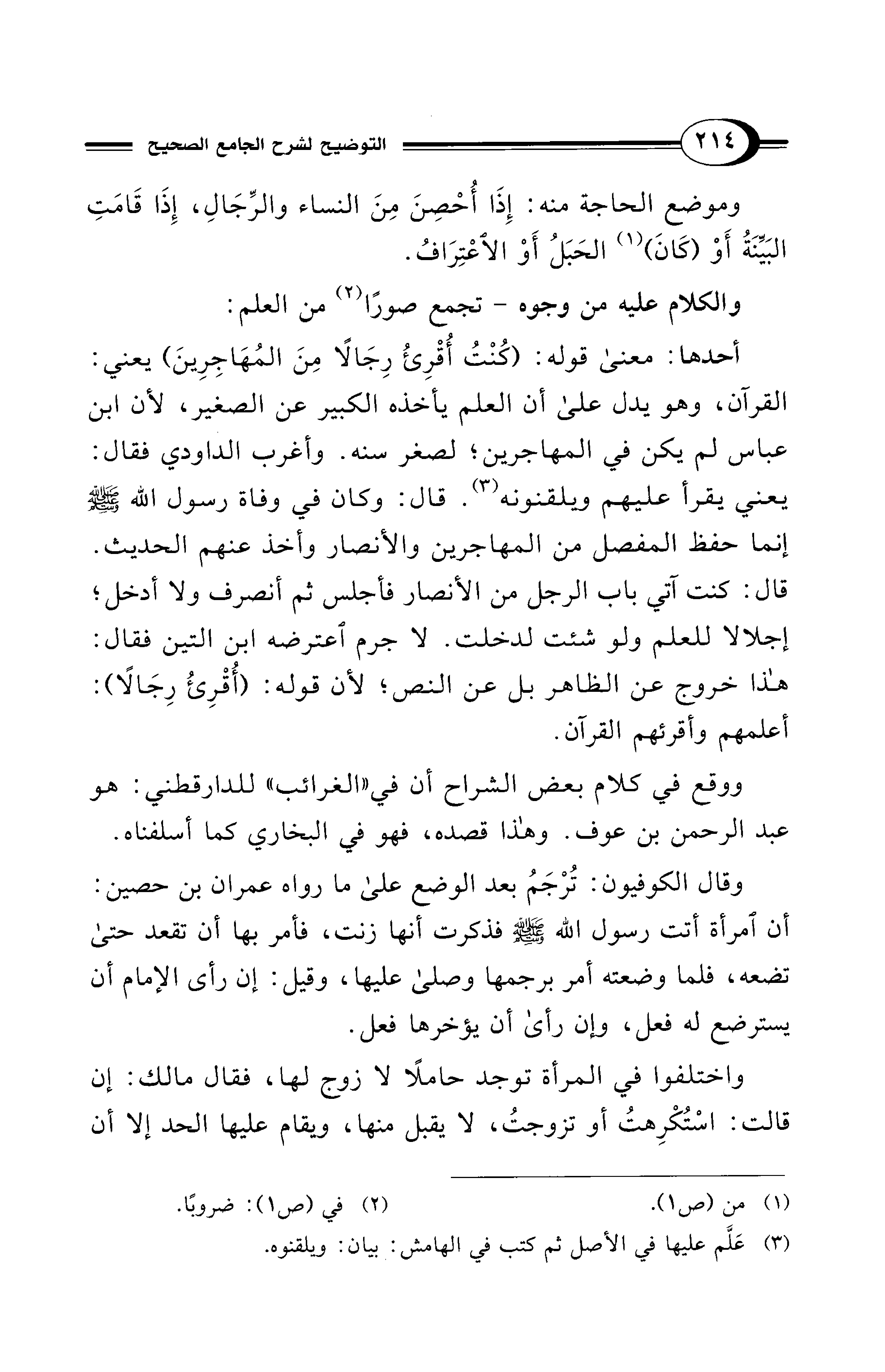 وموضع الحاجة منه: إِذَا أُحْصِنَ مِنَ النساء والرِّجَالِ، إِذَا قَامَتِ البَيِّنَةُ أَوْ (كَانَ) (¬1) الحَبَلُ أَوْ الاعْتِرَافُ.
