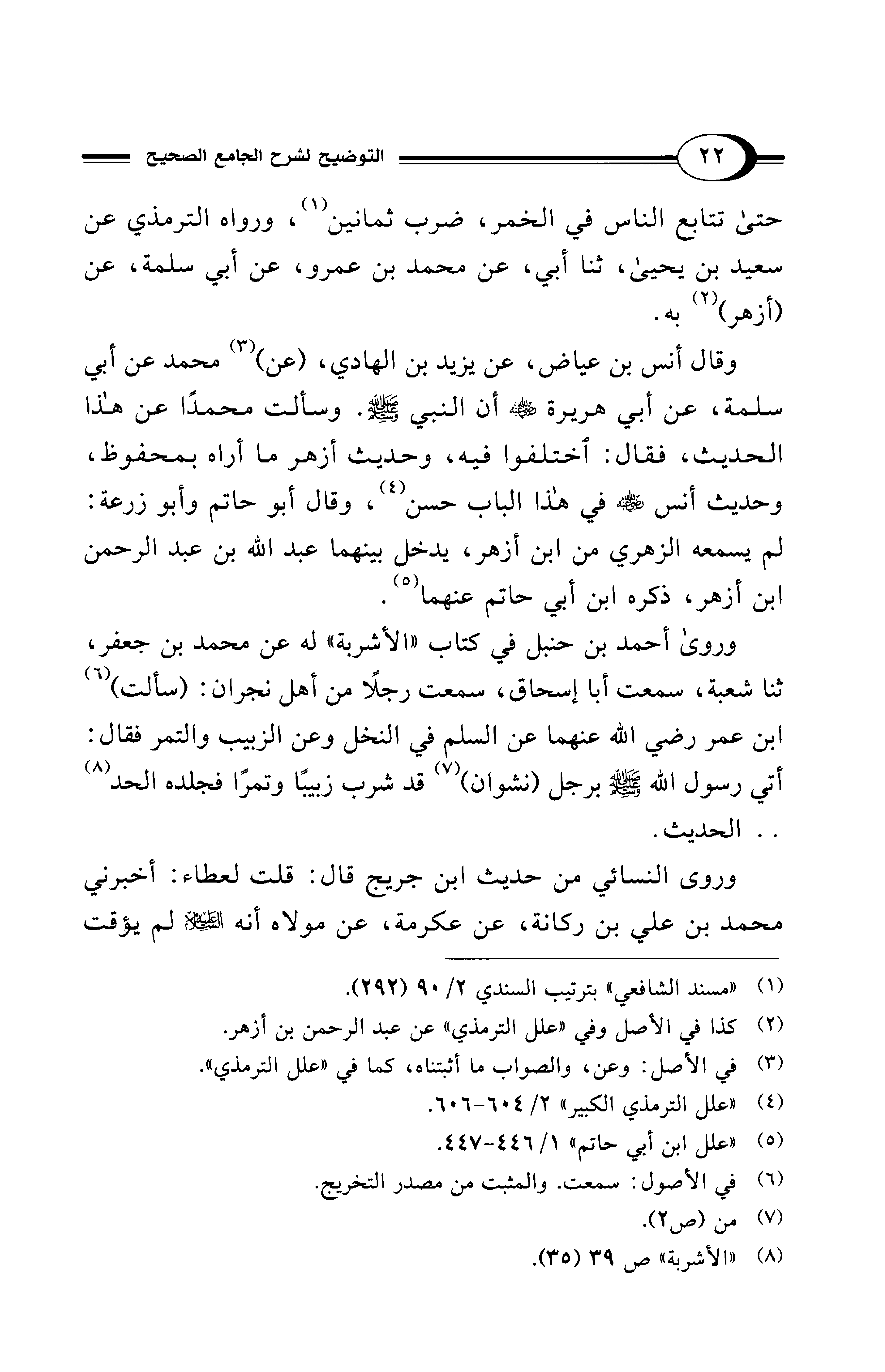 حتى تتابع الناس في الخمر، ضرب ثمانين (¬1)، ورواه الترمذي عن سعيد بن يحيى، ثنا أبي، عن محمد بن عمرو، عن أبي سلمة، عن (أزهر) (¬2) به.