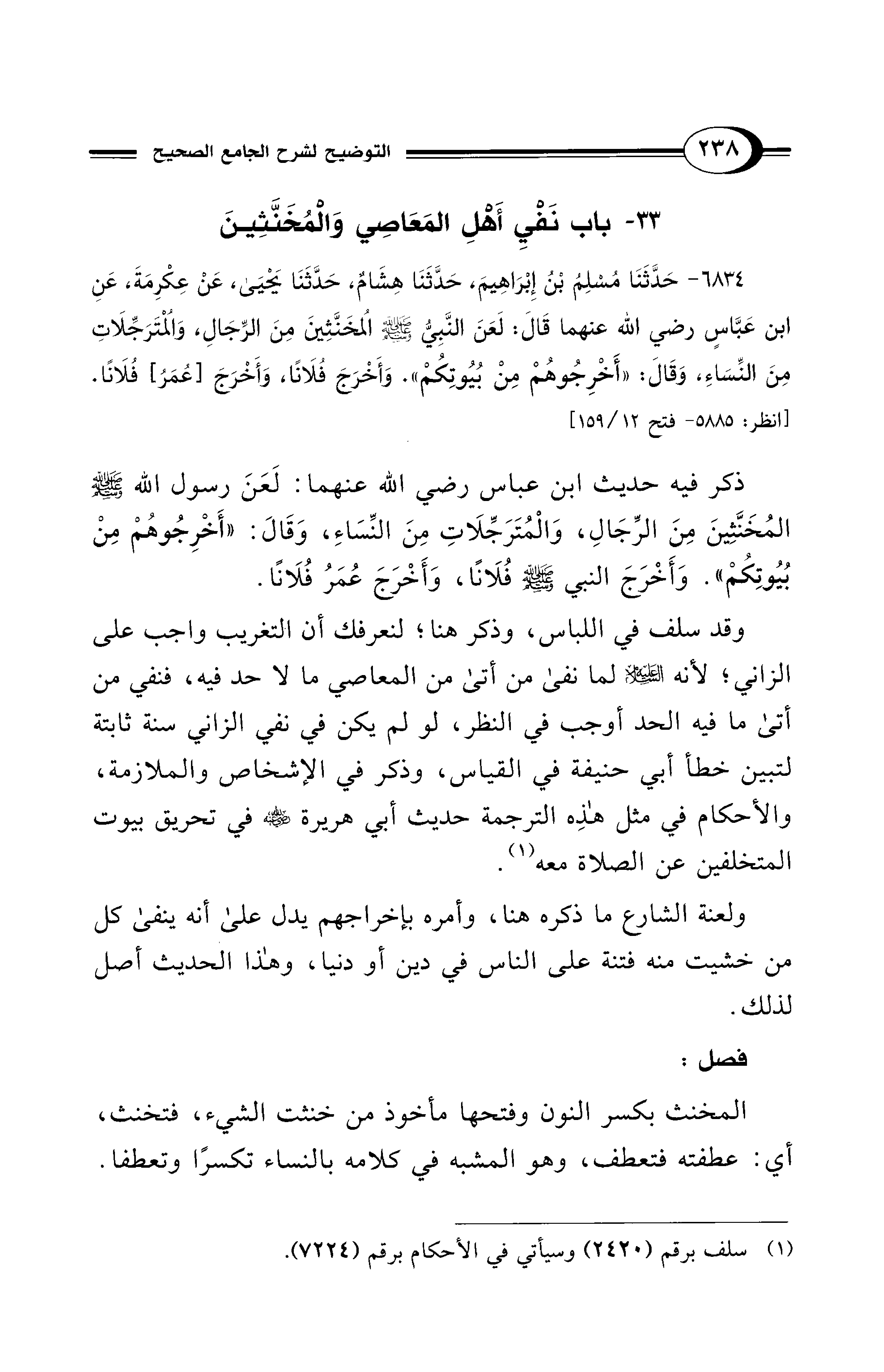 33 - باب نَفْيِ أَهْلِ المَعَاصِي وَالْمُخَنَّثِينَ