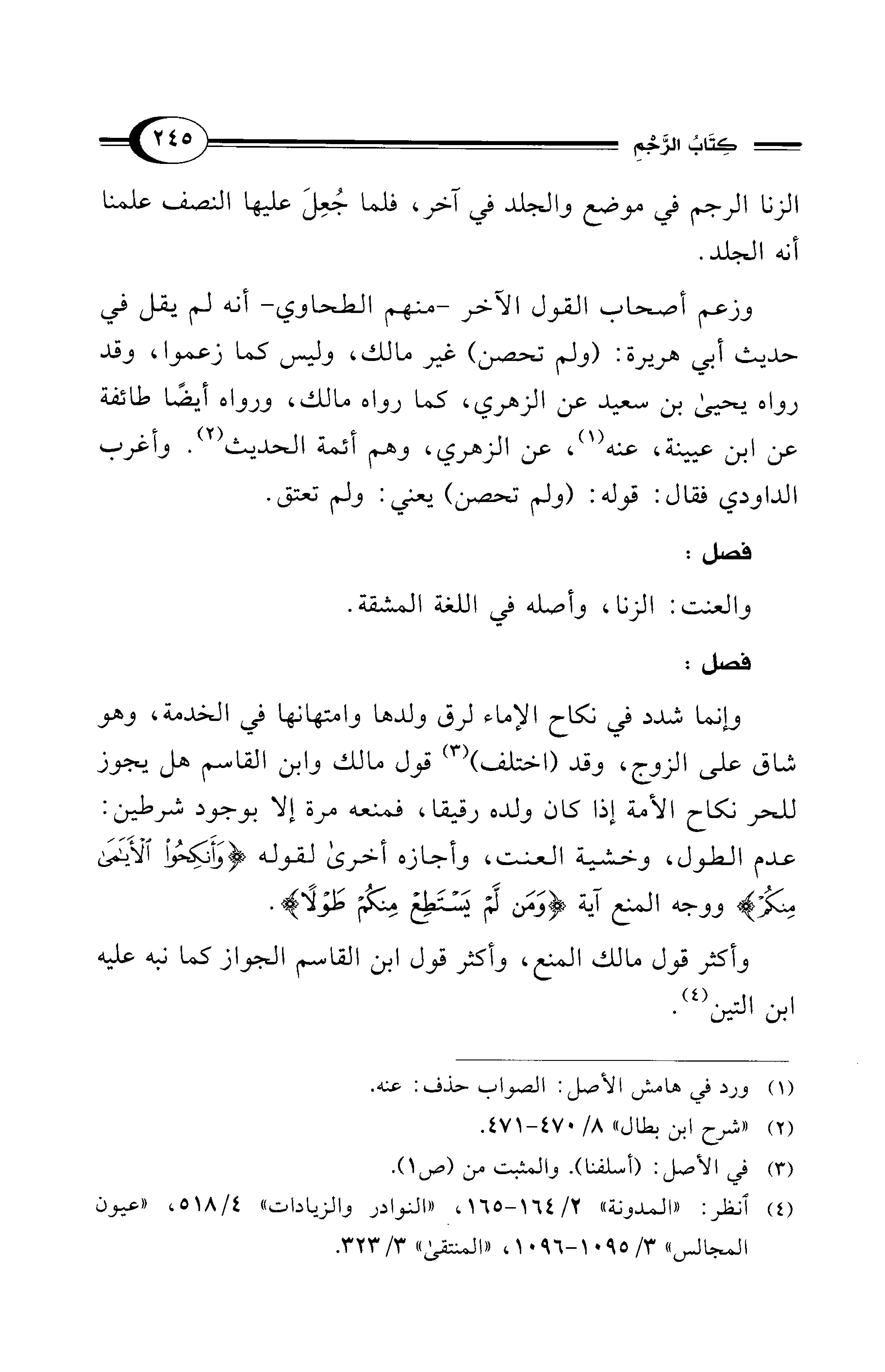 (¬4) انظر: "المدونة" 2/ 164 - 165، "النوادر والزيادات" 4/ 518 "عيون المجالس" 3/ 1095 - 1096، "المنتقى" 3/ 323.