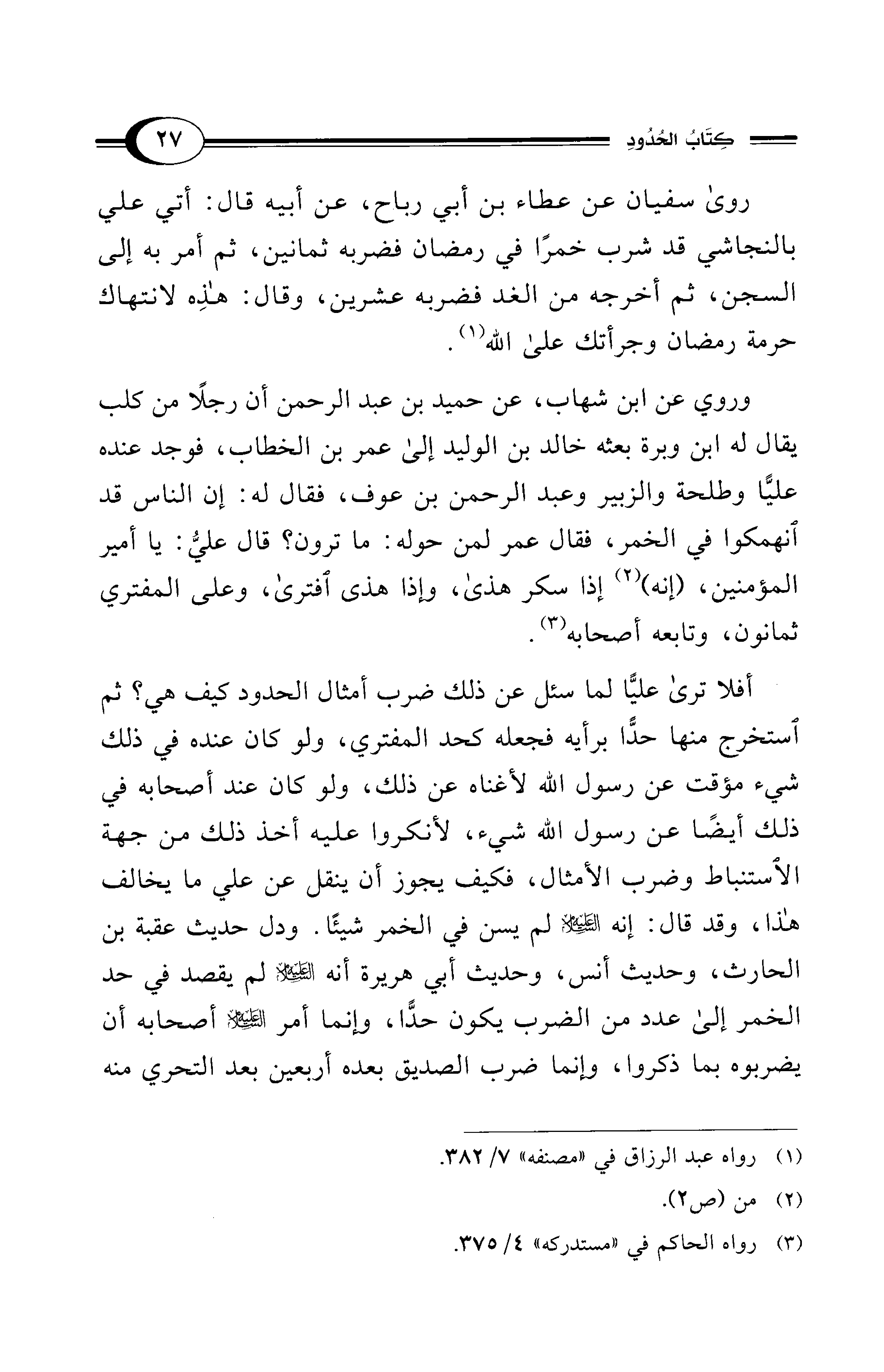 روى سفيان عن عطاء بن أبي رباح، عن أبيه قال: أتي علي بالنجاشي قد شرب خمرًا في رمضان فضربه ثمانين، ثم أمر به إلى السجن، ثم أخرجه من الغد فضربه عشرين، وقال: هذِه لانتهاك حرمة رمضان وجرأتك على الله (¬1).