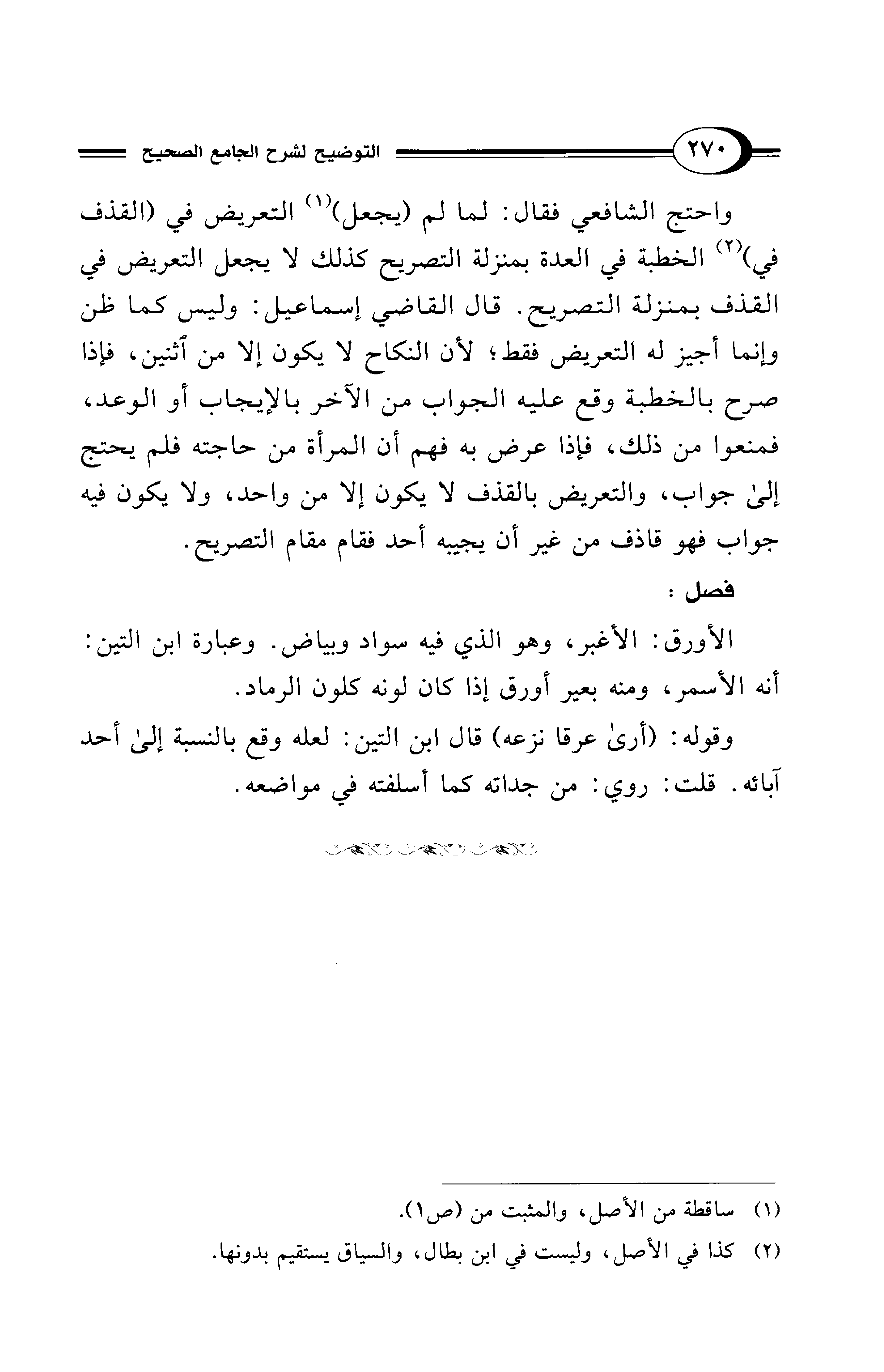 (¬2) كذا في الأصل، وليست في ابن بطال، والسياق يستقيم بدونها.