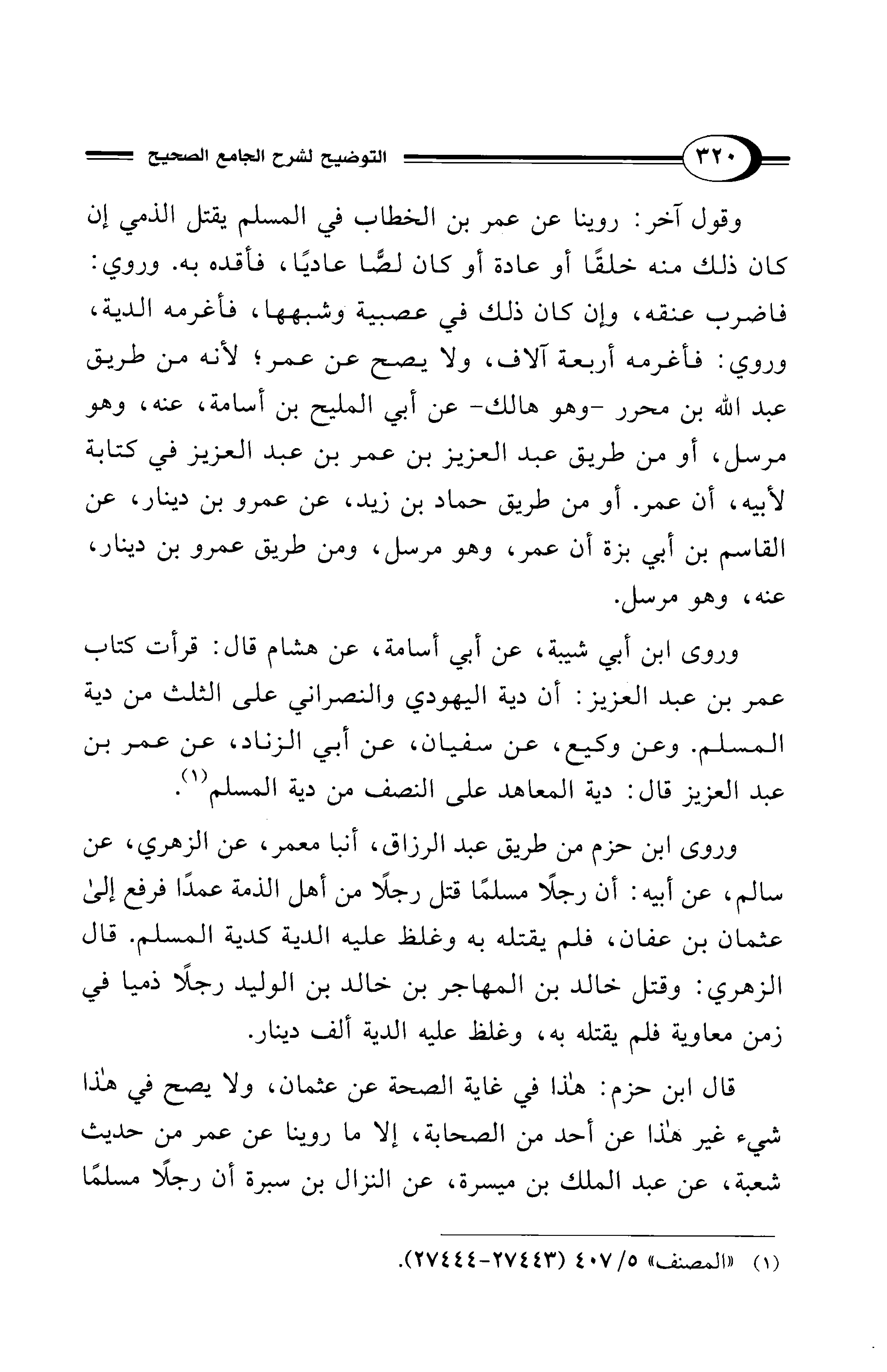 قال ابن حزم: هذا في غاية الصحة عن عثمان، ولا يصح في هذا شيء غير هذا عن أحد من الصحابة، إلا ما روينا عن عمر من حديث شعبة، عن عبد الملك بن ميسرة، عن النزال بن سبرة أن رجلًا مسلمًا
