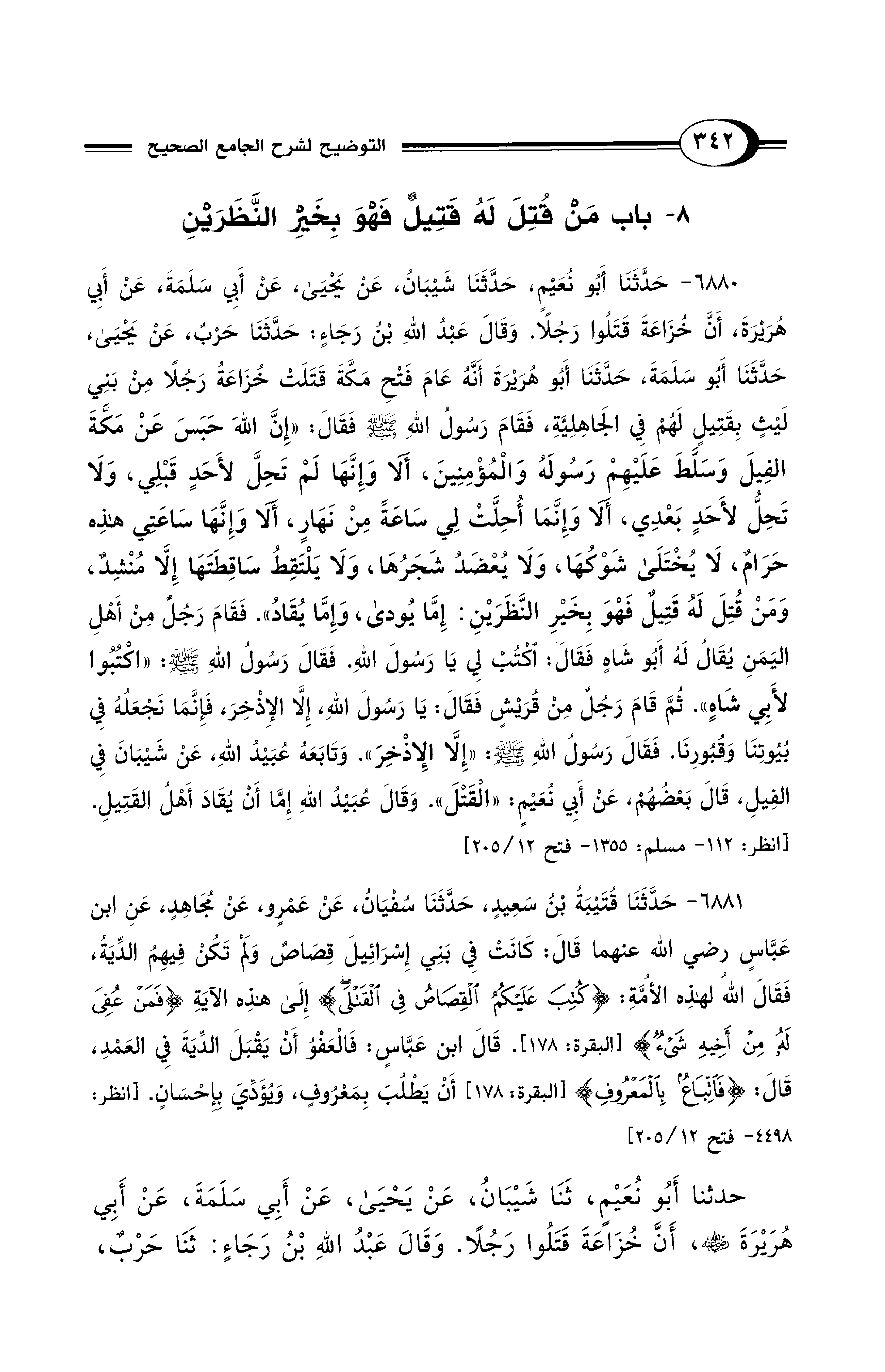 8 - باب مَنْ قُتِلَ لَهُ قَتِيلٌ فَهْوَ بِخَيْرِ النَّظَرَيْنِ