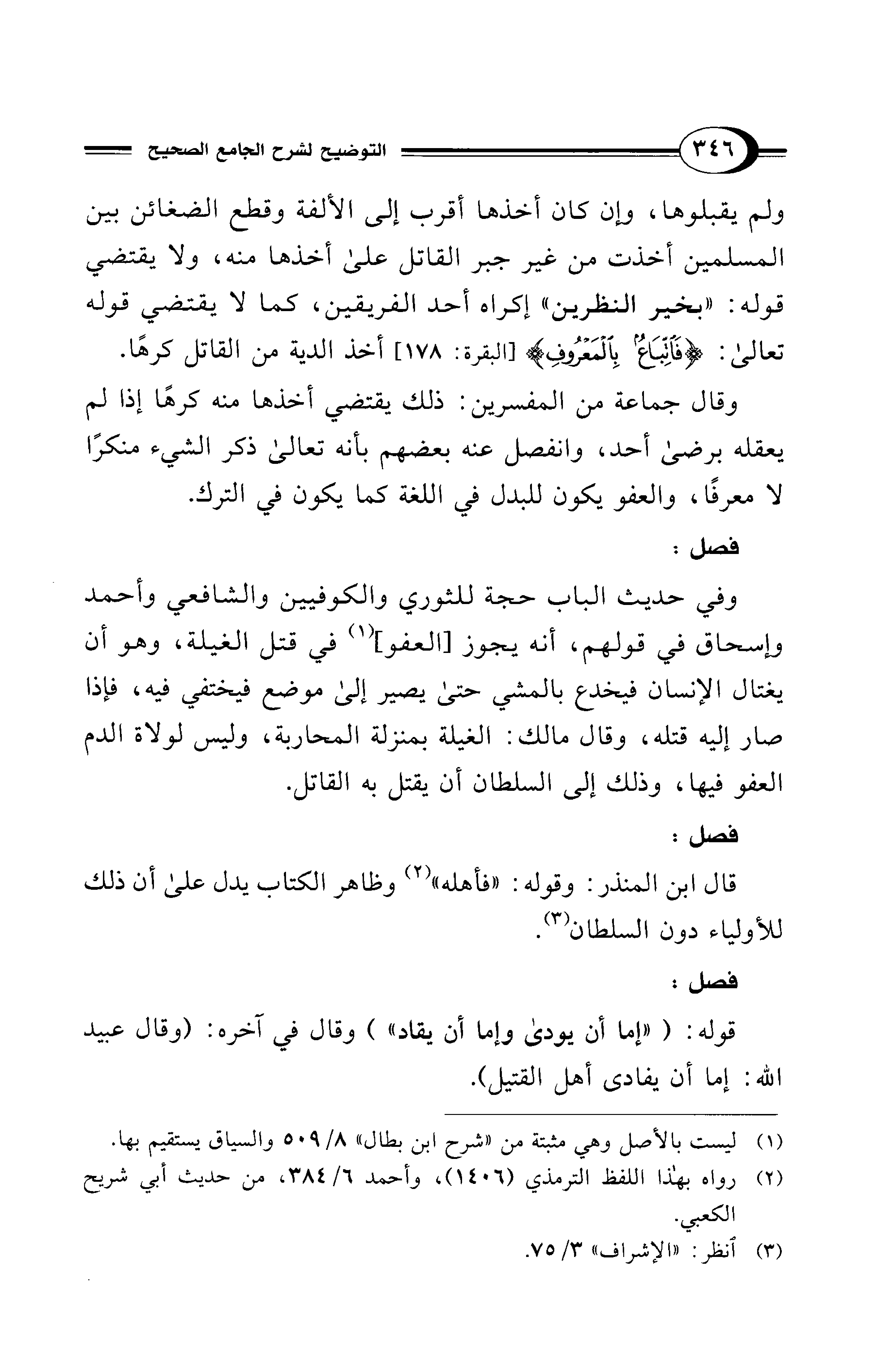 ولم يقبلوها، وإن كان أخذها أقرب إلى الألفة وقطع الضغائن بين المسلمين أخذت من غير جبر القاتل على أخذها منه، ولا يقتضي قوله: "بخير النظرين" إكراه أحد الفريقين، كما لا يقتضي قوله تعالى: {فَاتِّبَاعٌ بِالْمَعْرُوفِ} [البقرة: 178] أخذ الدية من القاتل كرهًا.
