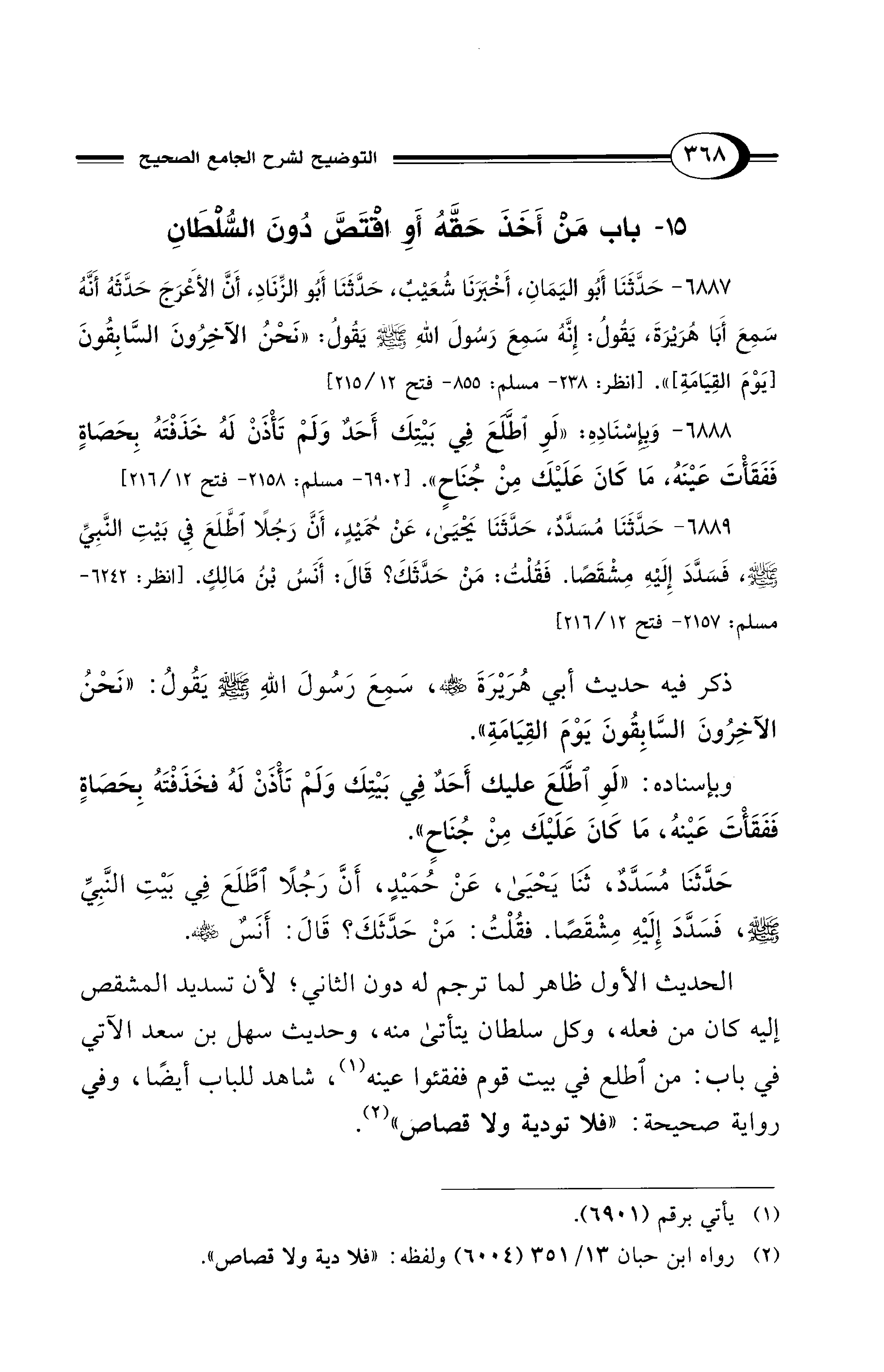 15 - باب مَنْ أَخَذَ حَقَّهُ أَوِ اقْتَصَّ دُونَ السُّلْطَانِ