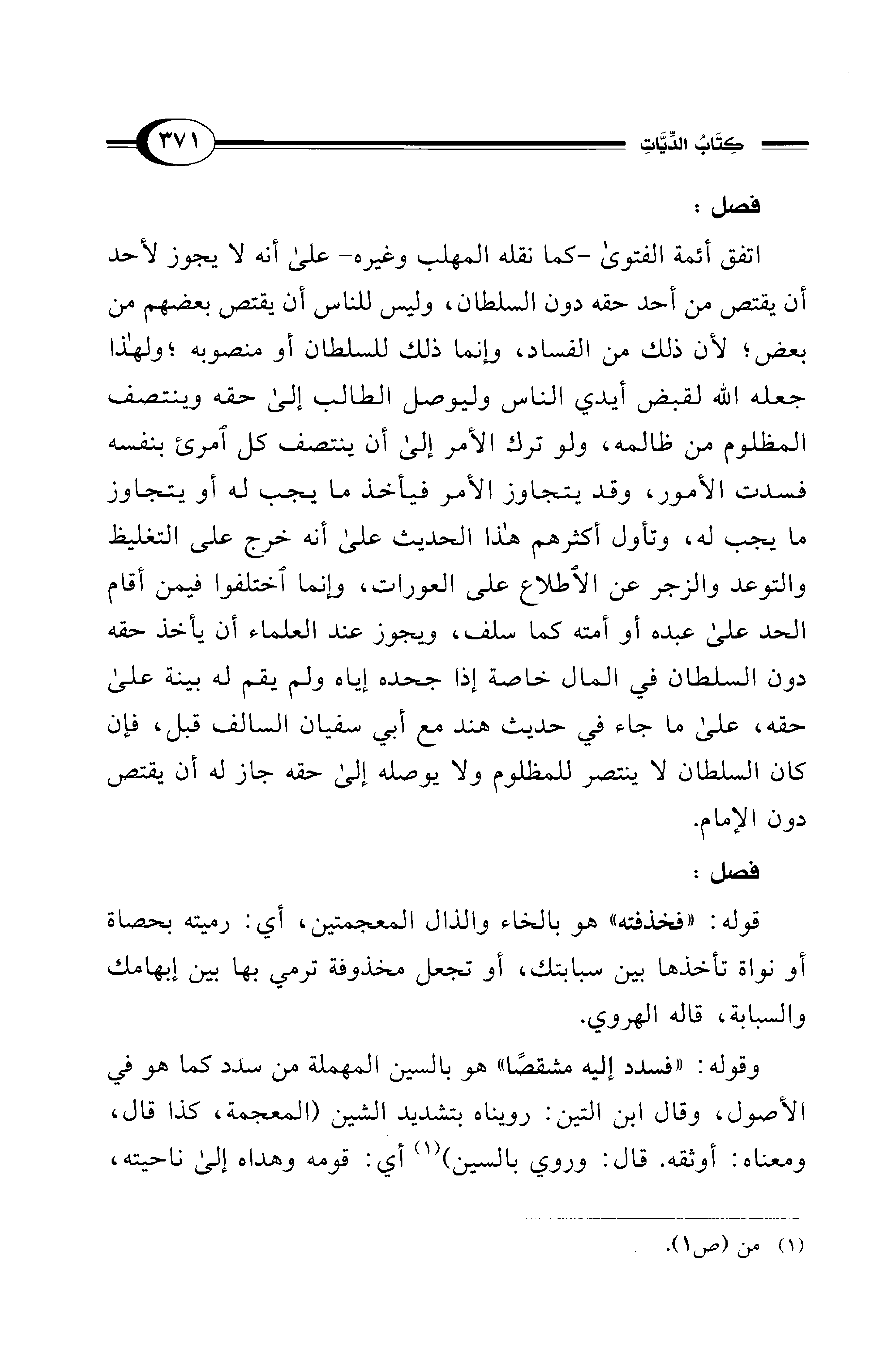 اتفق أئمة الفتوى -كما نقله المهلب وغيره- على أنه لا يجوز لأحد أن يقتص من أحد حقه دون السلطان، وليس للناس أن يقتص بعضهم من بعض؛ لأن ذلك من الفساد، وإنما ذلك للسلطان أو منصوبه؛ ولهذا جعله الله لقبض أيدي الناس وليوصل الطالب إلى حقه وينتصف المظلوم من ظالمه، ولو ترك الأمر إلى أن ينتصف كل امرئ بنفسه فسدت الأمور، وقد يتجاوز الأمر فيأخذ ما يجب له أو يتجاوز ما يجب له، وتأول أكثرهم هذا الحديث على أنه خرج على التغليظ والتوعد والزجر عن الاطلاع على العورات، وإنما اختلفوا فيمن أقام الحد على عبده أو أمته كما سلف، ويجوز عند العلماء أن يأخذ حقه دون السلطان في المال خاصة إذا جحده إياه ولم يقم له بينة على حقه، على ما جاء في حديث هند مع أبي سفيان السالف قبل، فإن كان السلطان لا ينتصر للمظلوم ولا يوصله إلى حقه جاز له أن يقتص دون الإمام.