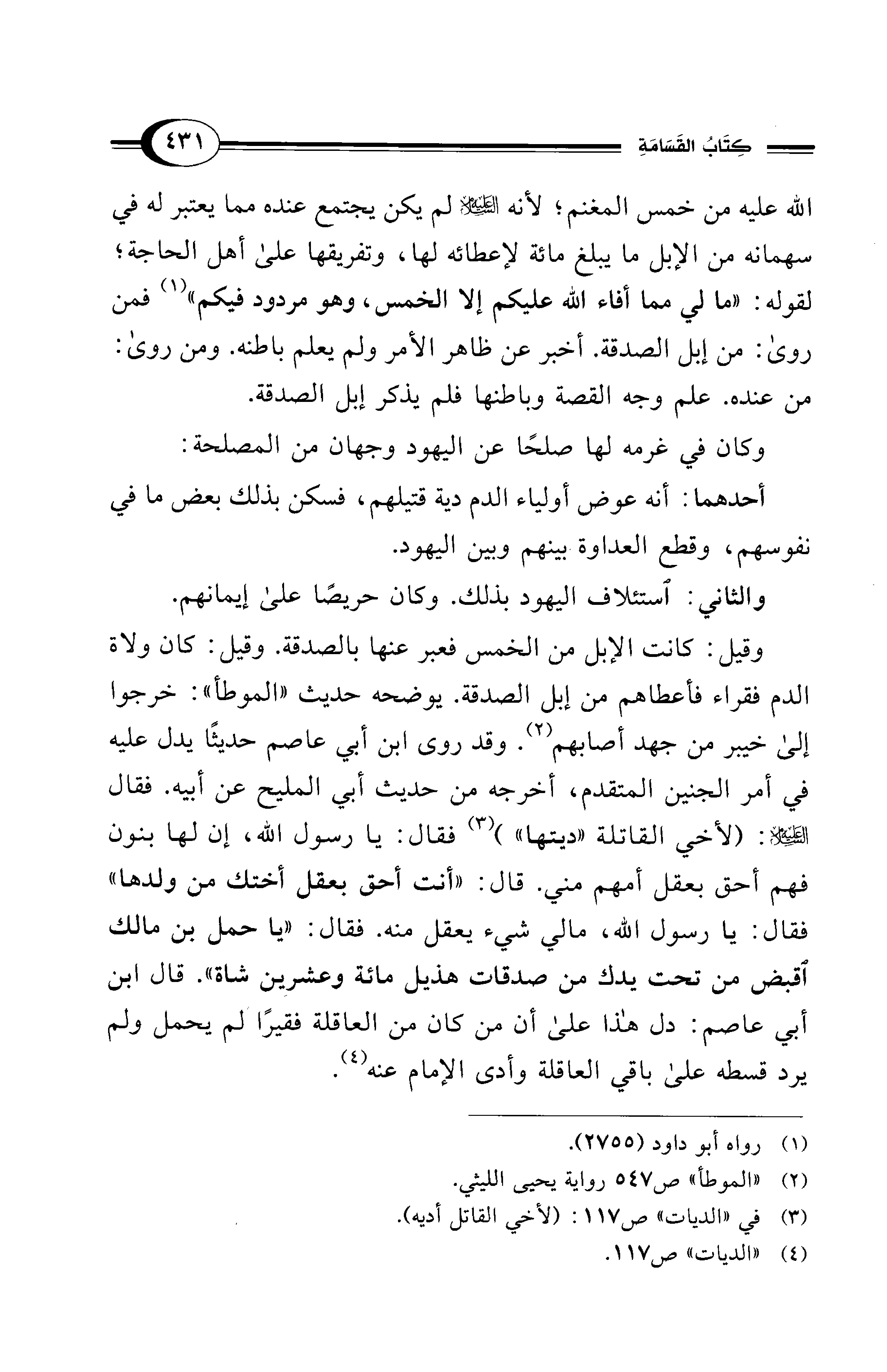 وقيل: كانت الإبل من الخمس فعبر عنها بالصدقة. وقيل: كان ولاة الدم فقراء فأعطاهم من إبل الصدقة. يوضحه حديث "الموطأ": خرجوا إلى خيبر من جهد أصابهم (¬2). وقد روى ابن أبي عاصم حديثًا يدل عليه في أمر الجنين المتقدم، أخرجه من حديث أبي المليح عن أبيه. فقال - عليه السلام -: (لأخي القاتلة "ديتها") (¬3) فقال: يا رسول الله، إن لها بنون فهم أحق بعقل أمهم مني. قال: "أنت أحق بعقل أختك من ولدها" فقال: يا رسول الله، مالي شيء يعقل منه. فقال: "يا حمل بن مالك اقبض من تحت يدك من صدقات هذيل مائة وعشرين شاة". قال ابن أبي عاصم: دل هذا على أن من كان من العاقلة فقيرًا لم يحمل ولم يرد قسطه على باقي العاقلة وأدى الإمام عنه (¬4).
