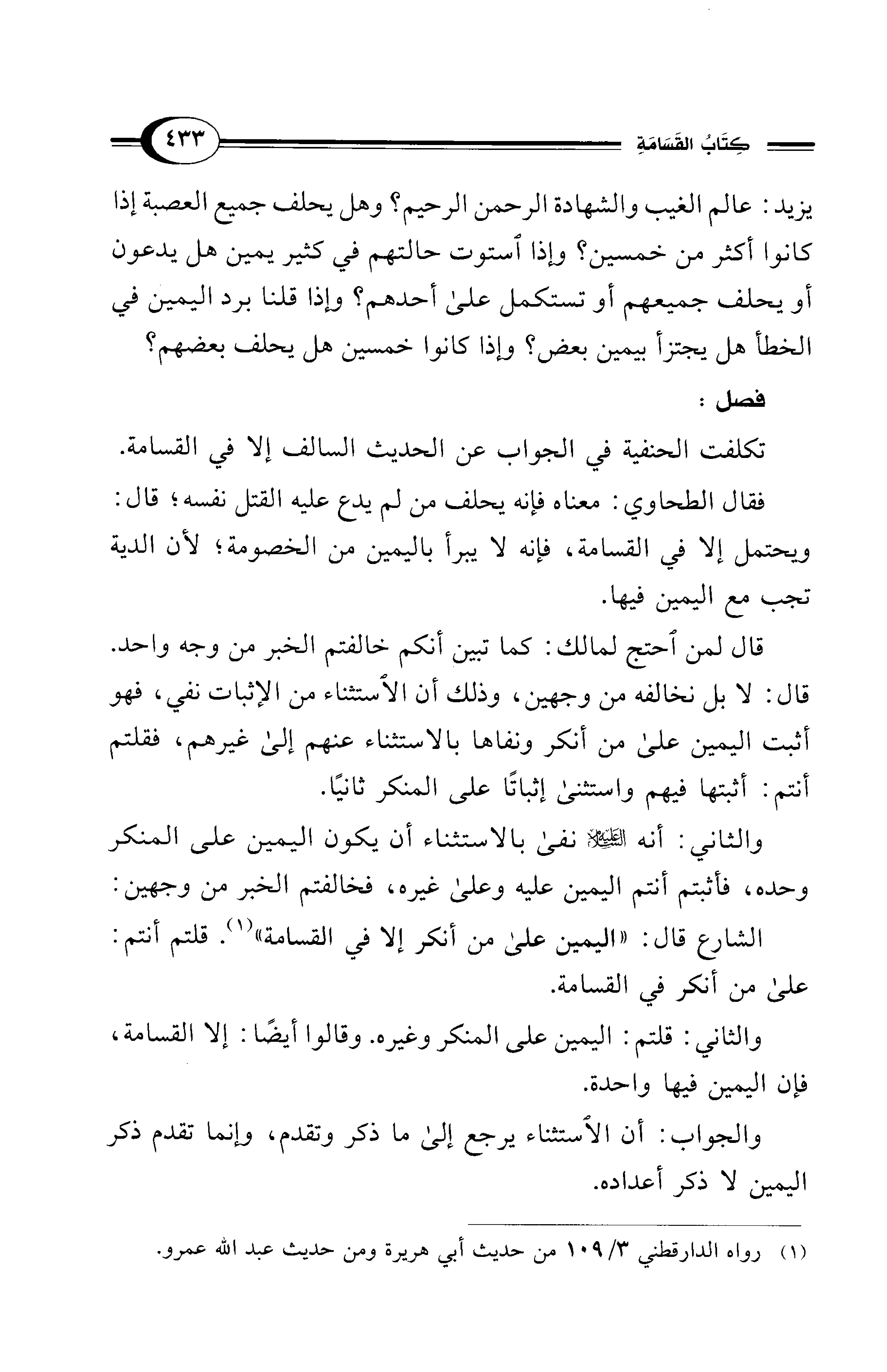 تكلفت الحنفية في الجواب عن الحديث السالف إلا في القسامة.
