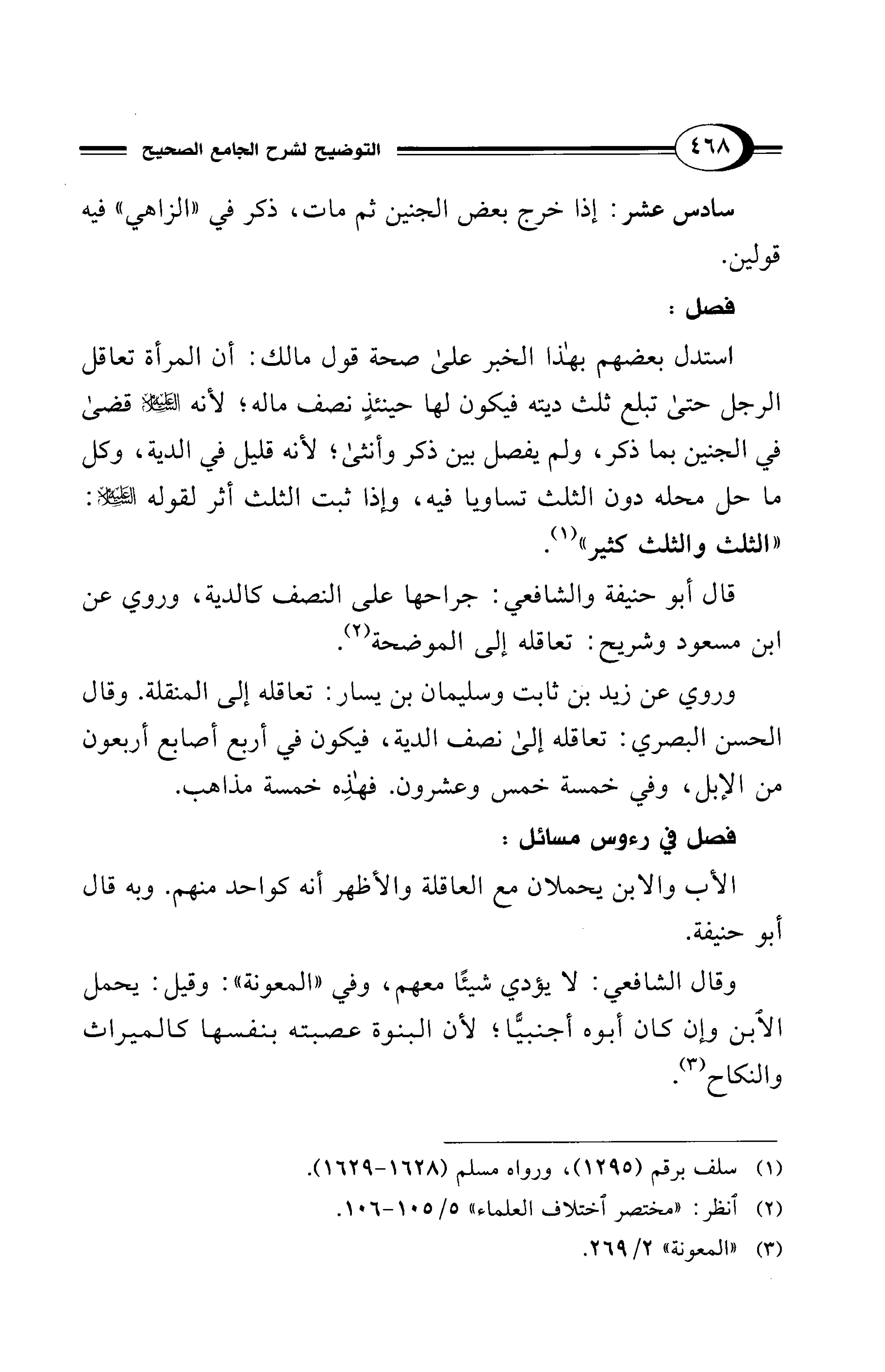 استدل بعضهم بهذا الخبر على صحة قول مالك: أن المرأة تعاقل الرجل حتى تبلع ثلث ديته فيكون لها حينئذٍ نصف ماله؛ لأنه - عليه السلام - قضى في الجنين بما ذكر، ولم يفصل بين ذكر وأنثى؛ لأنه قليل في الدية، وكل ما حل محله دون الثلث تساويا فيه، وإذا ثبت الثلث أثر لقوله - عليه السلام -: "الثلث والثلث كثير" (¬1).